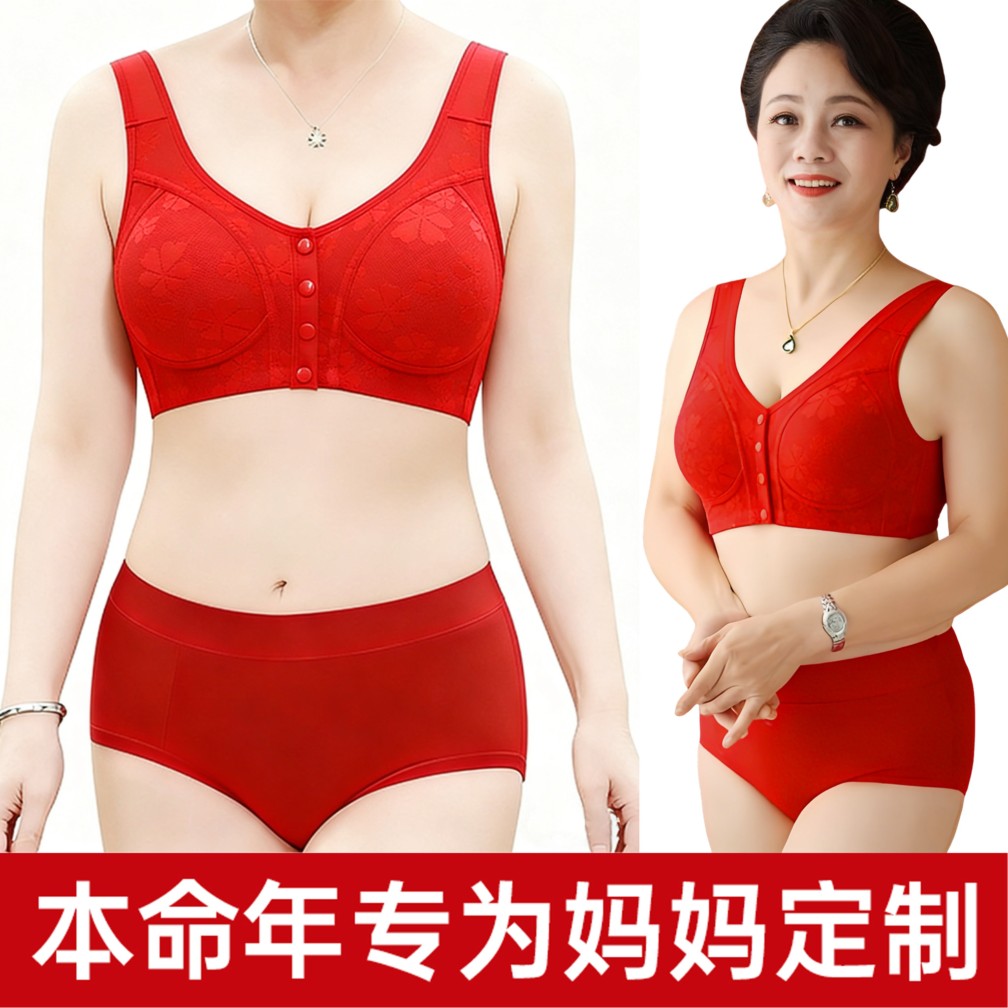 都市丽人红色本命年内衣套装 女小胸聚拢结婚2026马年无痕蕾丝文胸