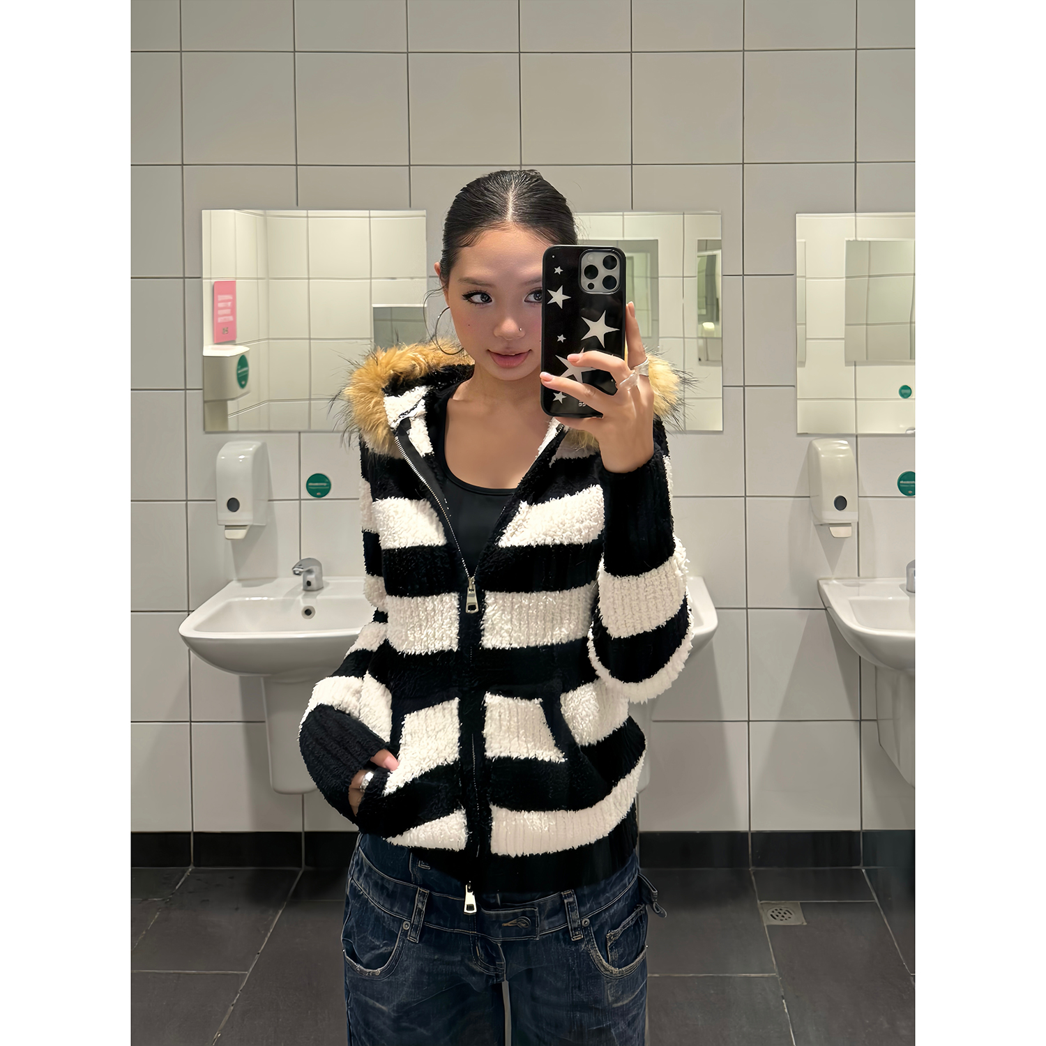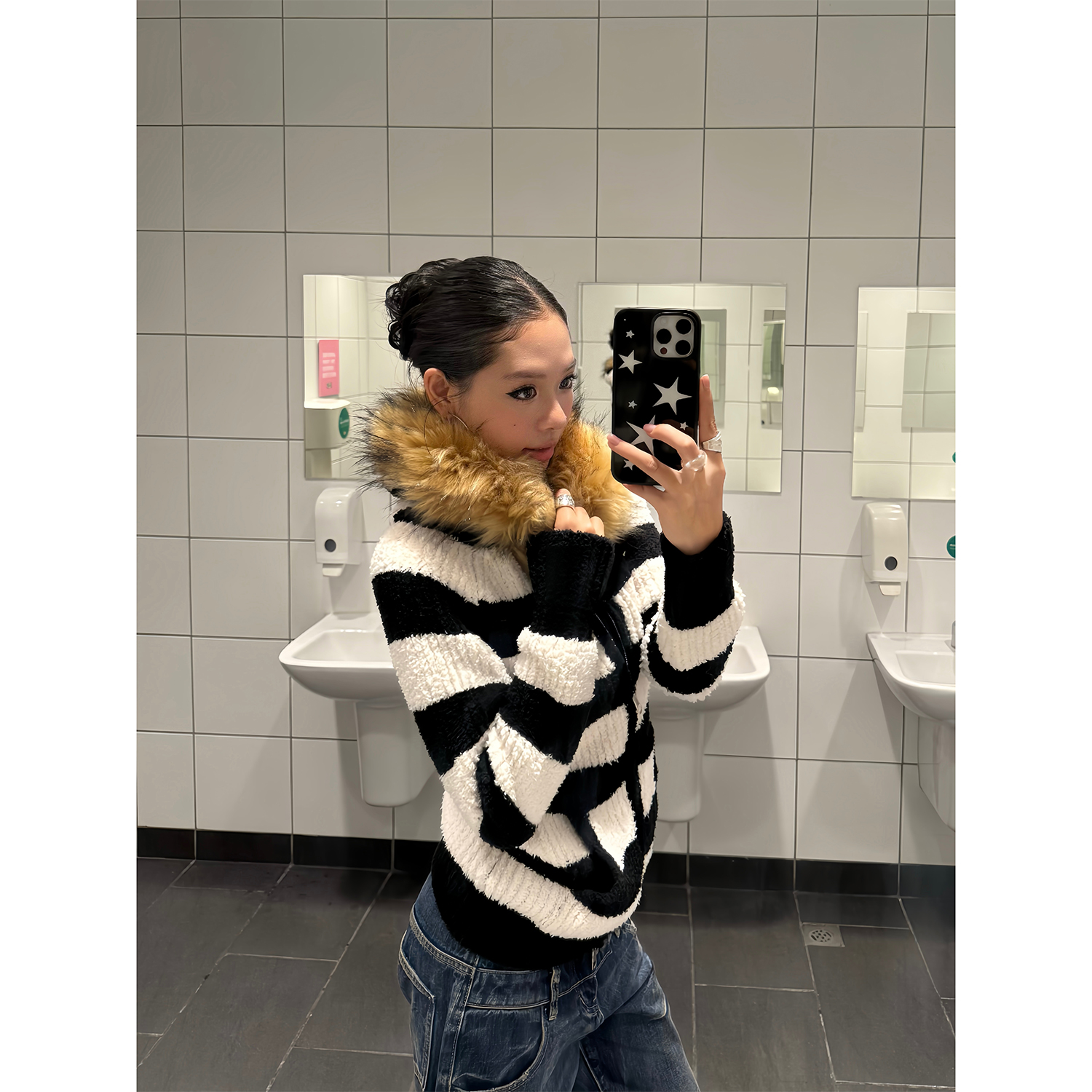 宽松软糯连帽开衫 Girlyhalo美式 复古动物提花毛衣外套女秋冬新款