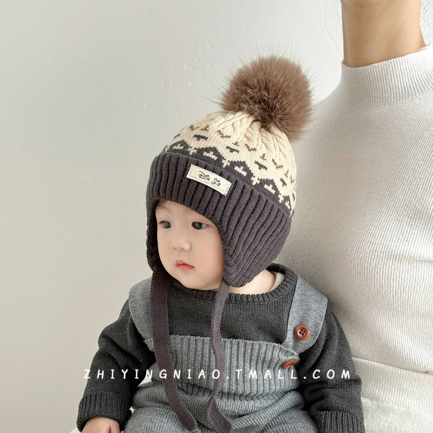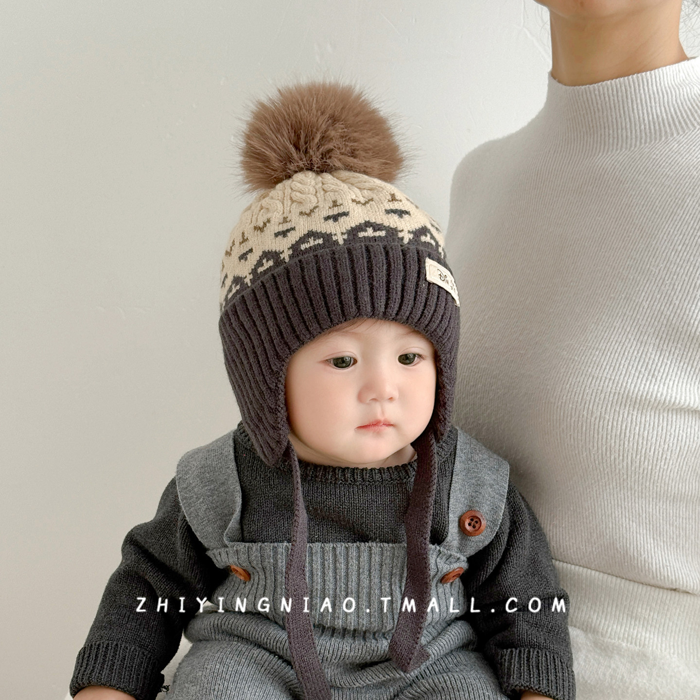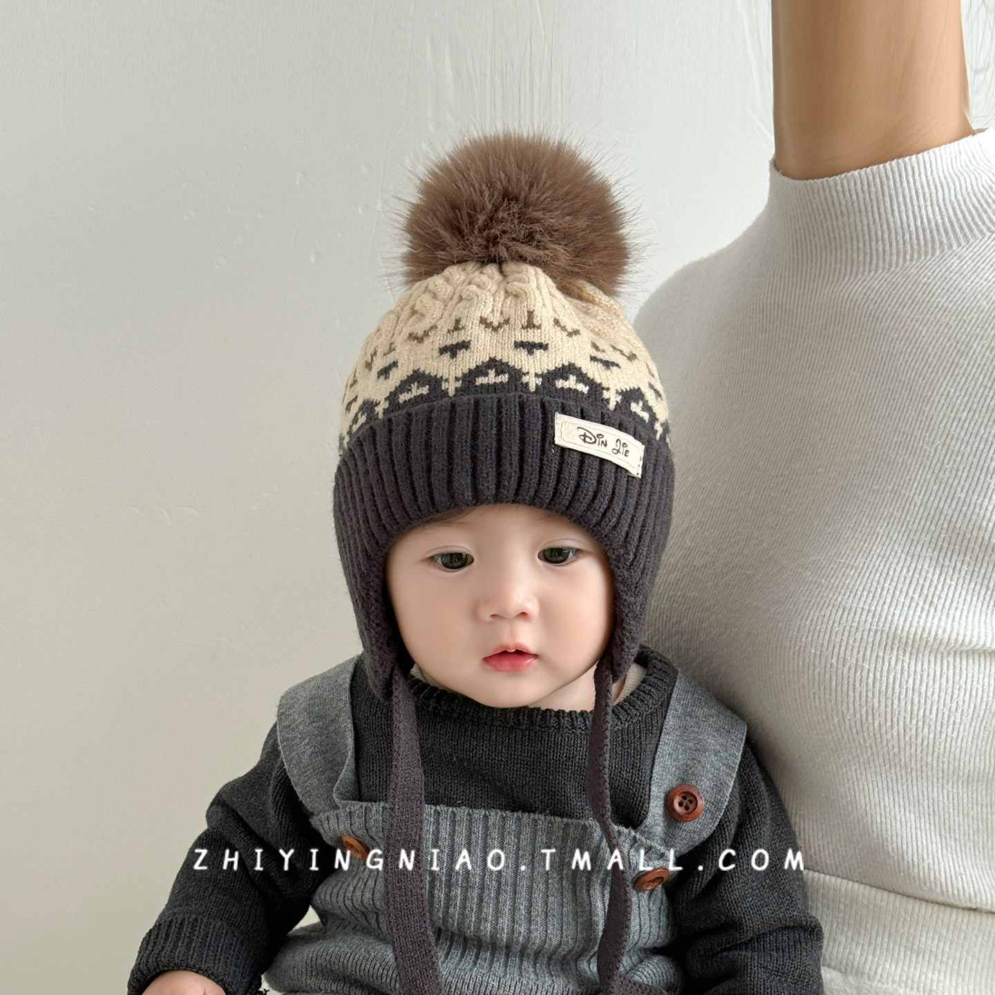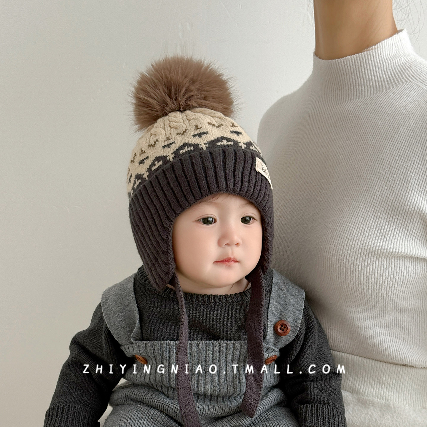婴儿帽子秋冬季 针织帽韩系加厚百搭护耳帽小月龄宝宝男童毛线帽子