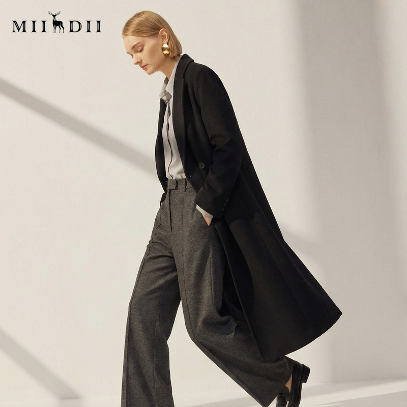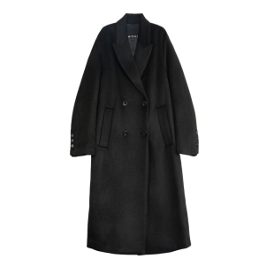 谜底呢子大衣女2025冬季 通勤简约双排扣直筒羊毛呢258MD5501 新款