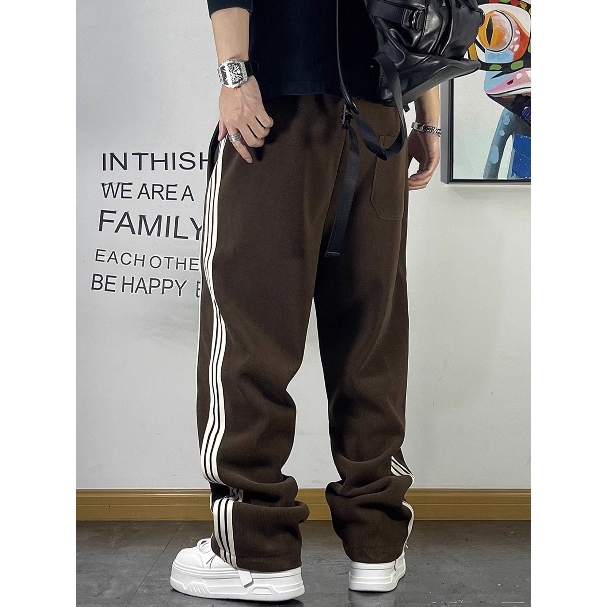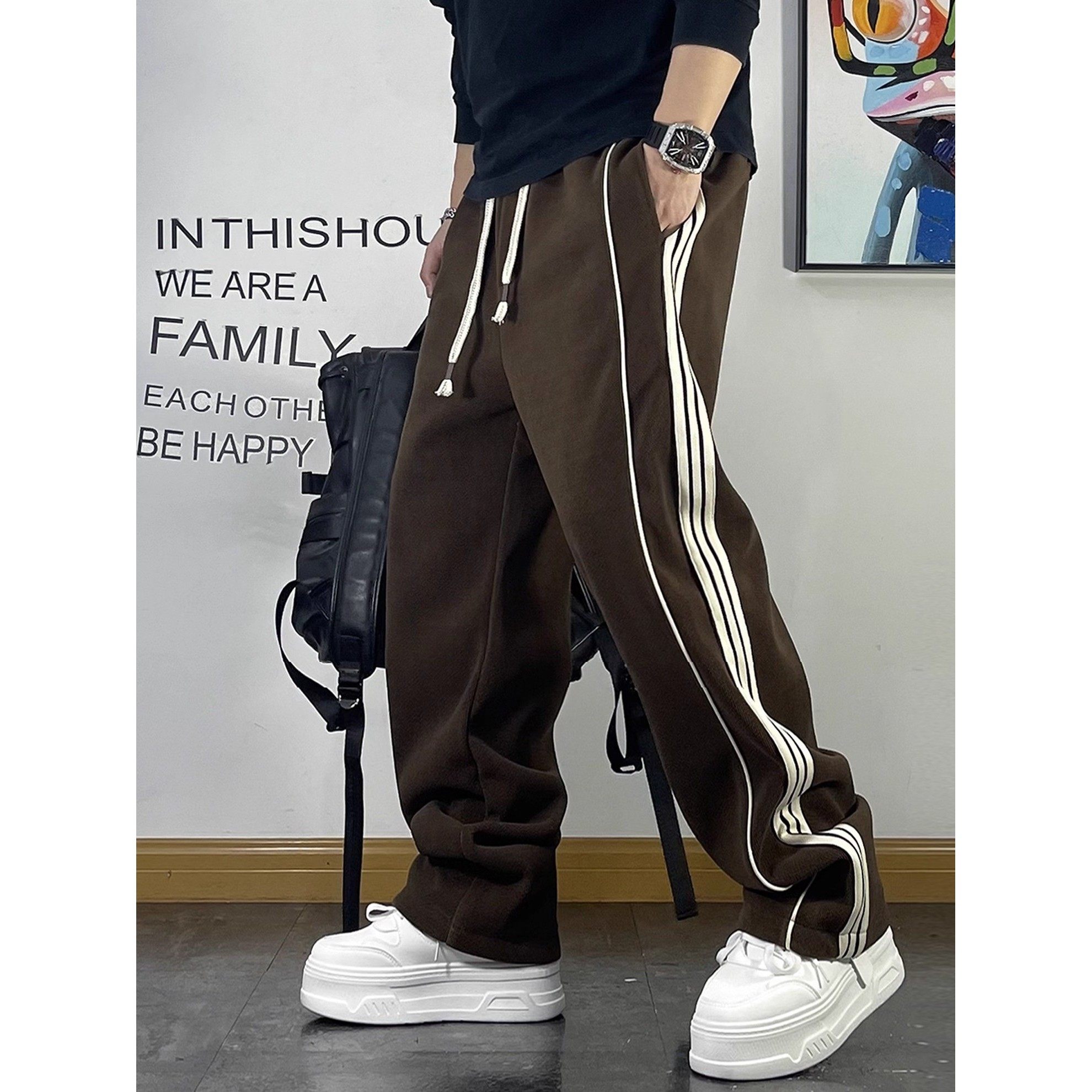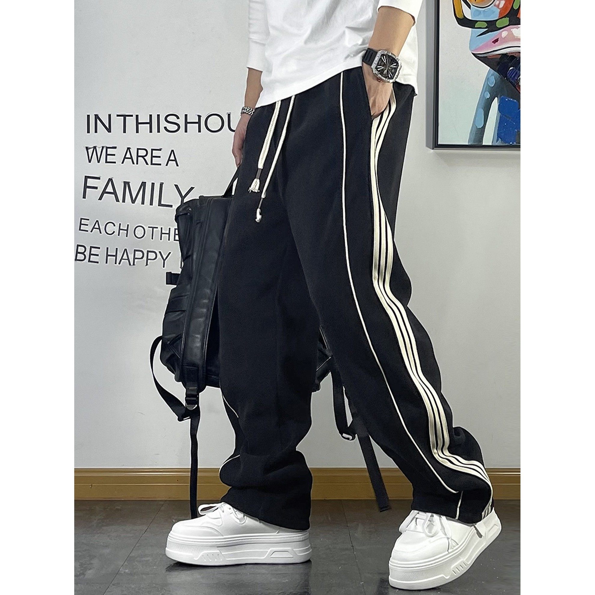 抽绳百搭直筒卫裤 青年痞帅潮流条纹拼接宽松休闲裤 春秋男装 特大码