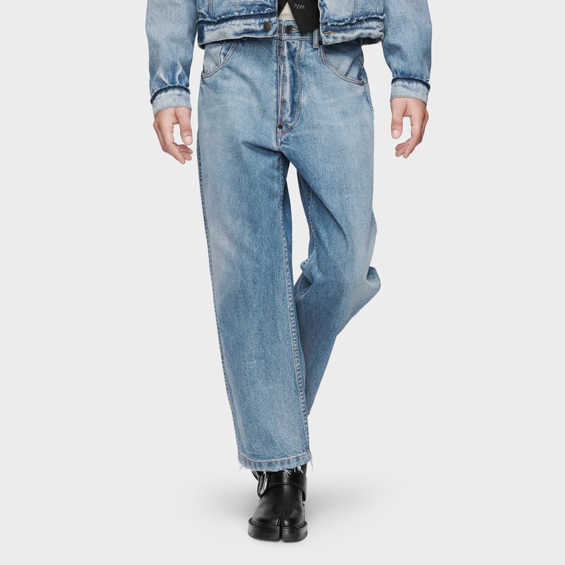 直筒牛仔长裤 MaisonMargiela马吉拉做旧毛边效果弯刀裤 春夏新品