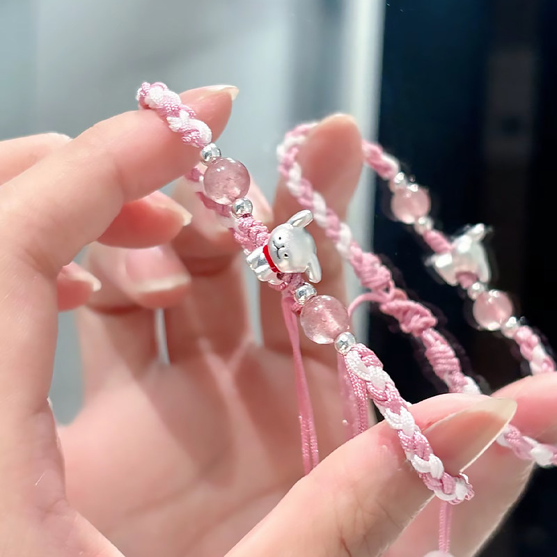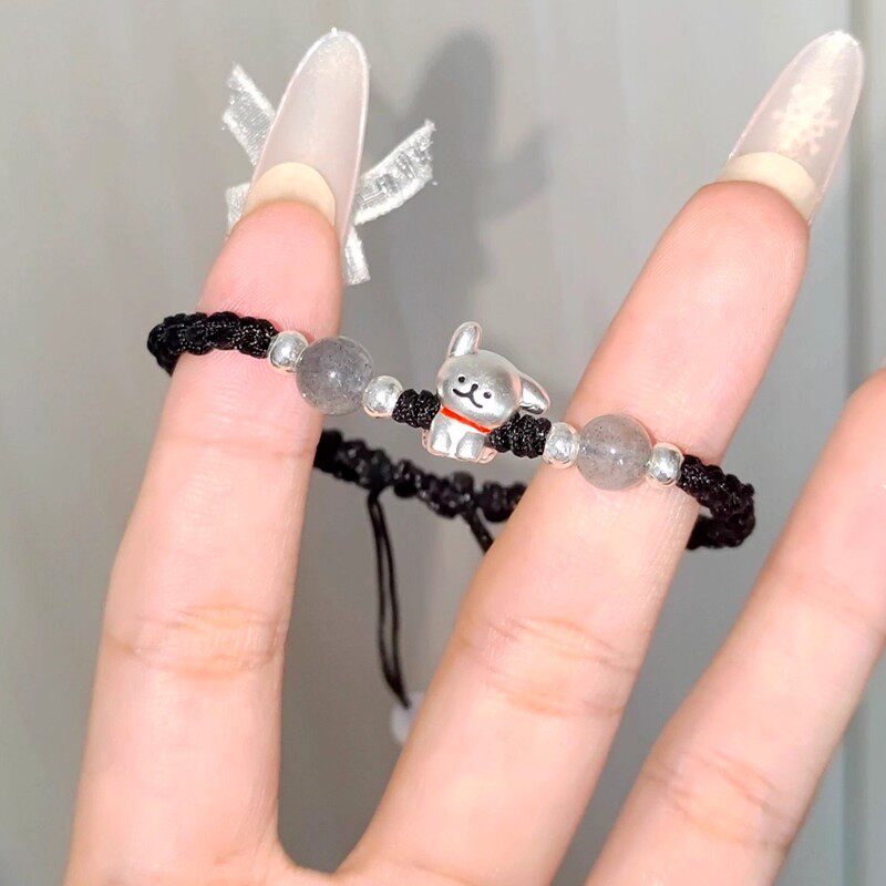S925足银线条小狗手链日常轻奢百搭学生情侣手绳送男女友生日礼物