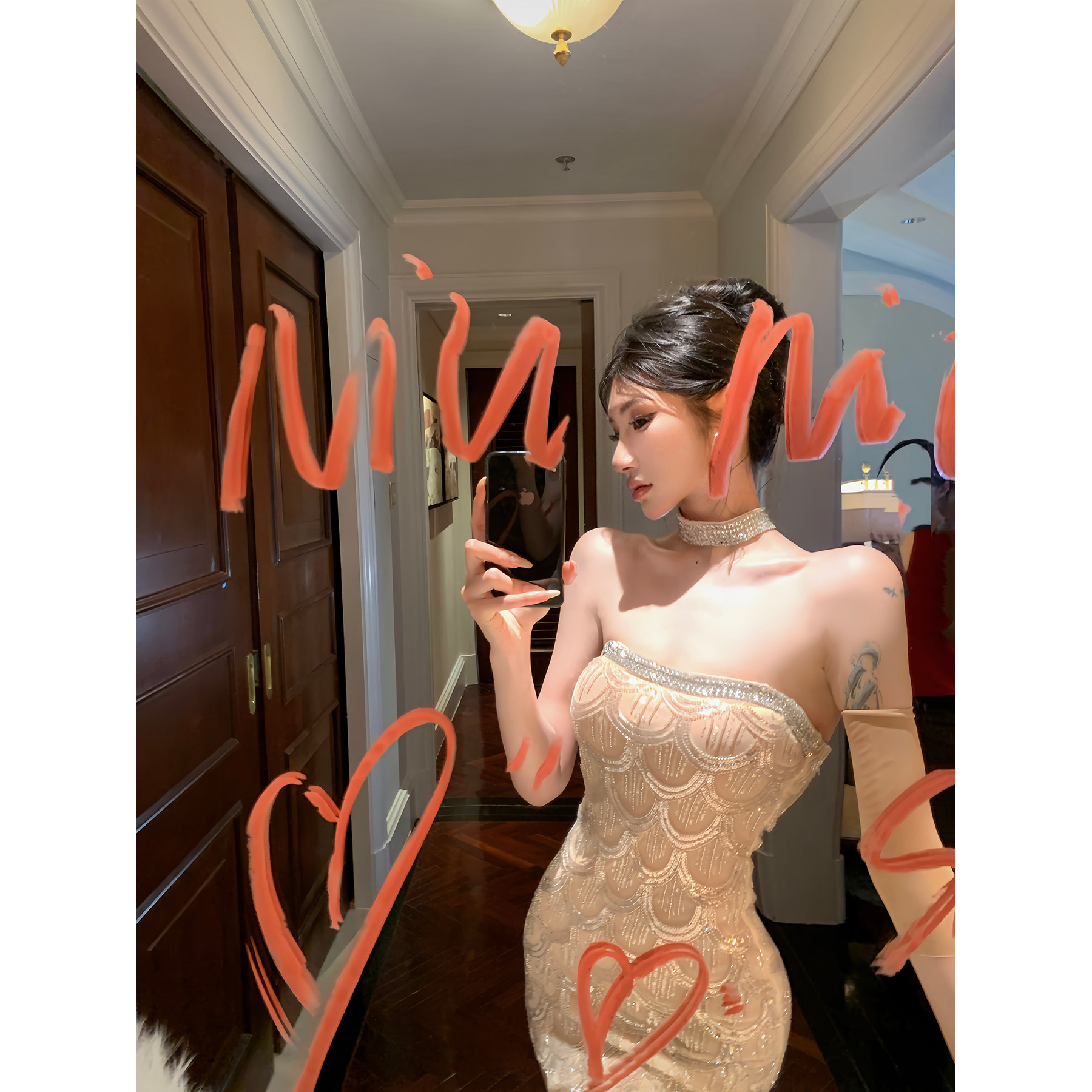 辣妹风粉色气质显瘦一字肩包臀连衣裙女绝美露肩百搭毛衣裙秋冬季