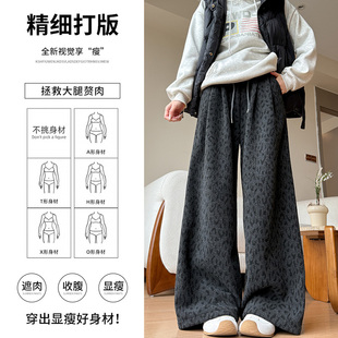 高腰显瘦百搭阔腿裤 加绒加厚慵懒豹纹印花休闲裤 女2025秋冬新款