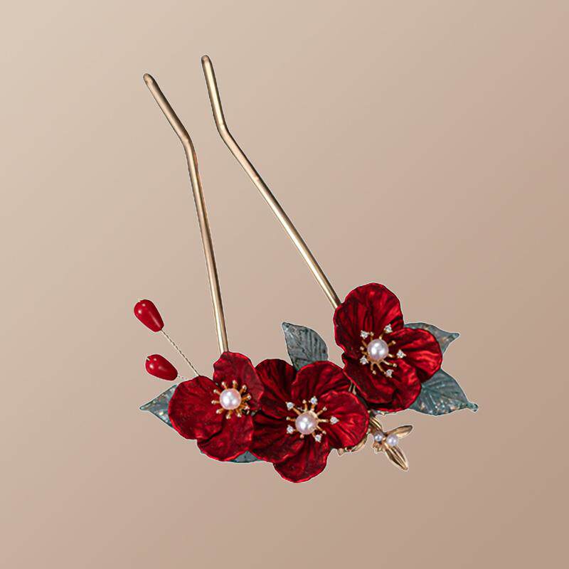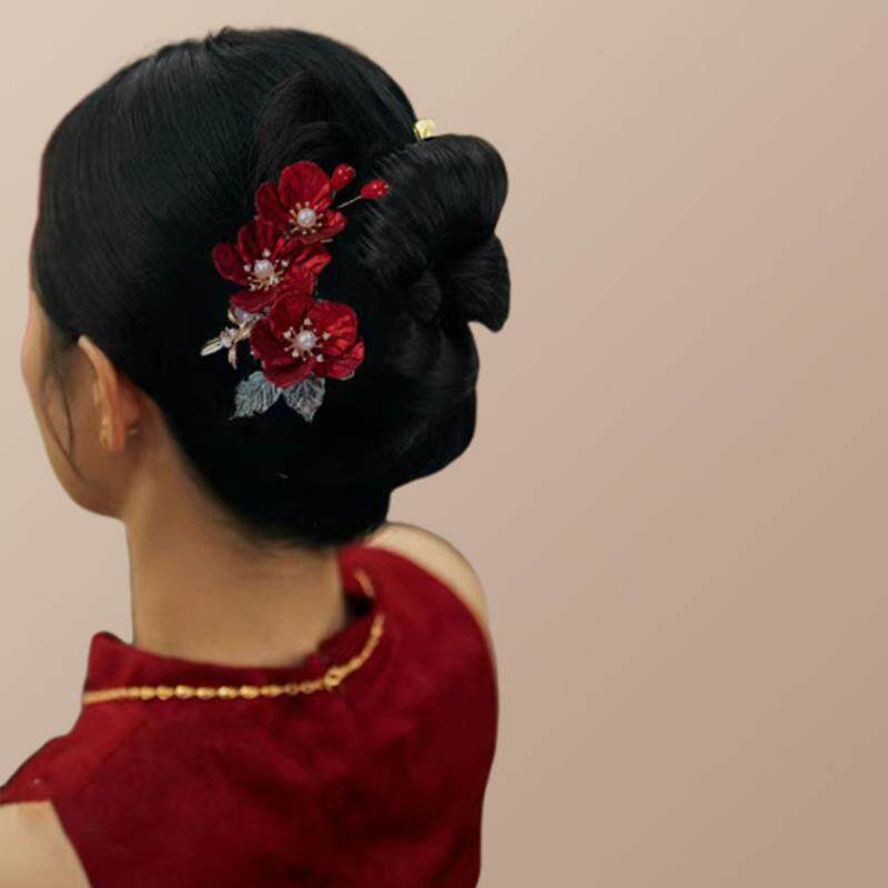新中式 头花红色插梳发夹女新娘订婚敬酒服晚礼u型发簪子发卡头饰