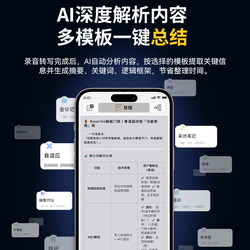 AI智能录音笔会议纪要AI分析总结实时转写翻译TicNote NOTE PIAUD