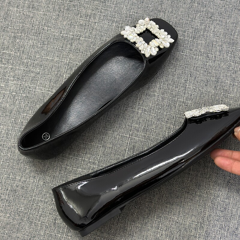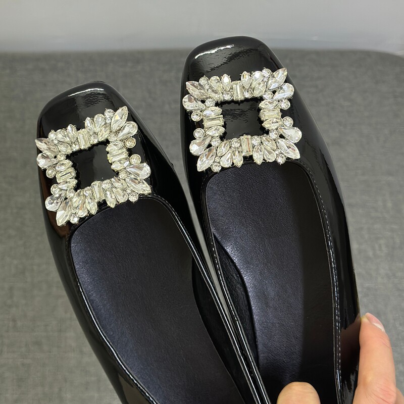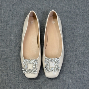 晚晚风方头鞋 女平底一脚蹬软皮飘鞋 水钻方扣浅口单鞋 外贸撤柜法式