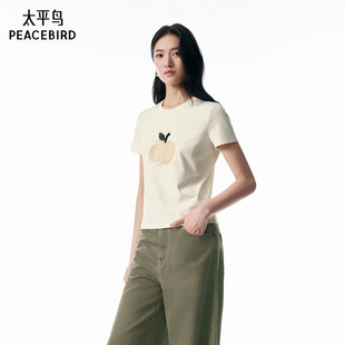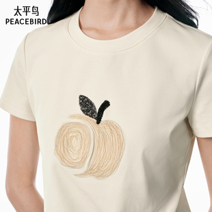 T恤女士莱赛尔圆领上衣 趣味立体苹果图案短袖 太平鸟26春夏季 新款