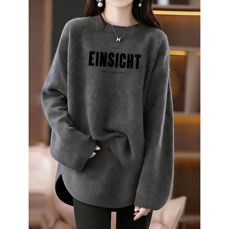 ins 遮肉上衣德绒打底衫 加厚磨毛长袖 T恤女秋冬卫衣内搭圆领中长款