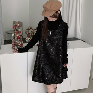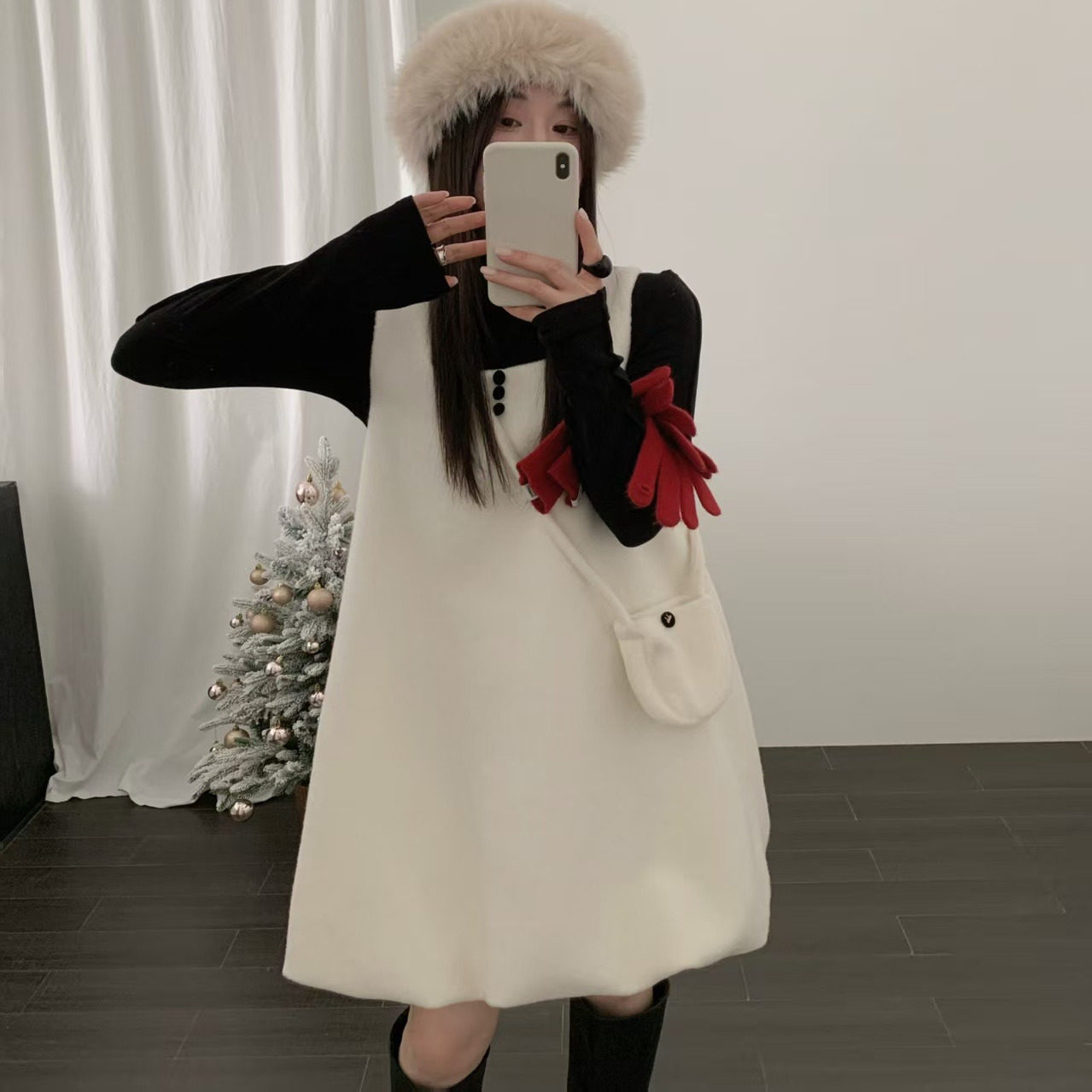 花苞背心裙毛呢女小个子减龄小众套装 百搭休闲中长红色连衣裙韩版