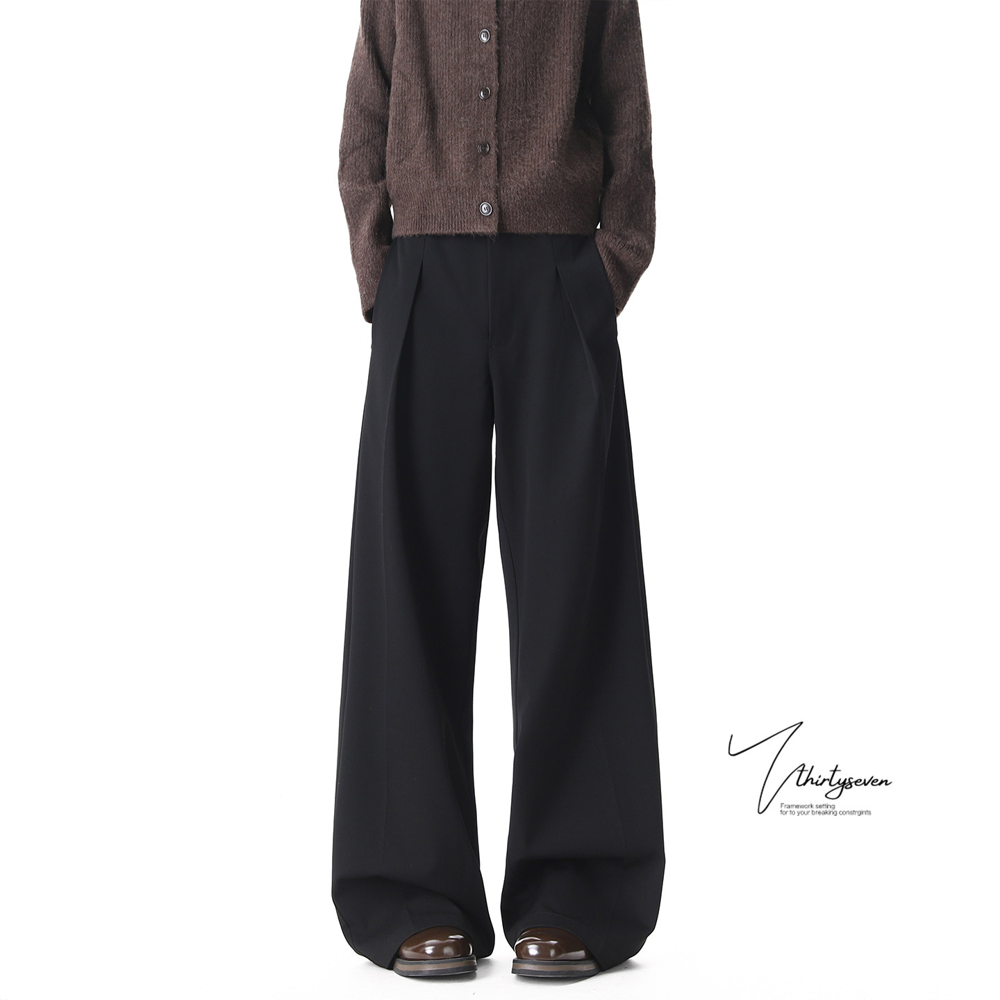阔腿拖地复合加厚休闲裤 CAKUNTA 挺阔row风立体分割弯刀休闲西裤