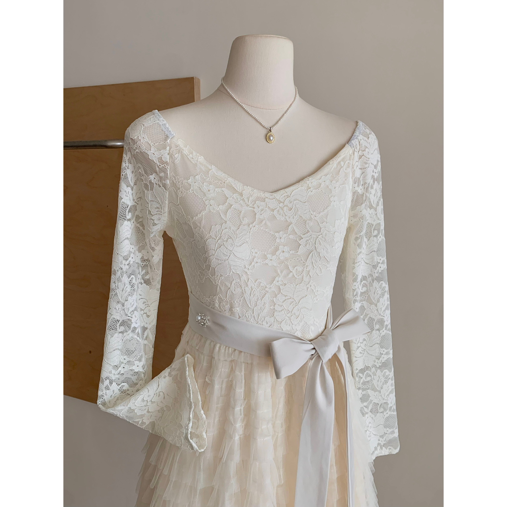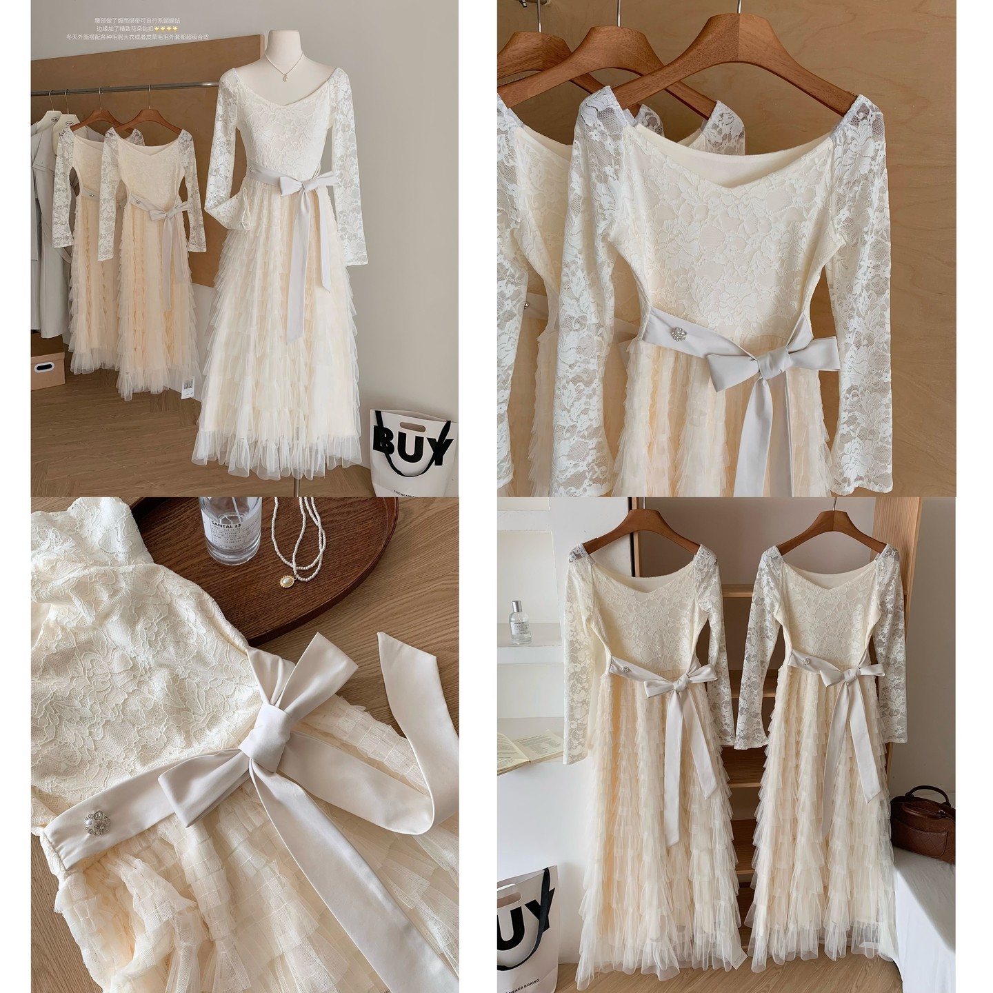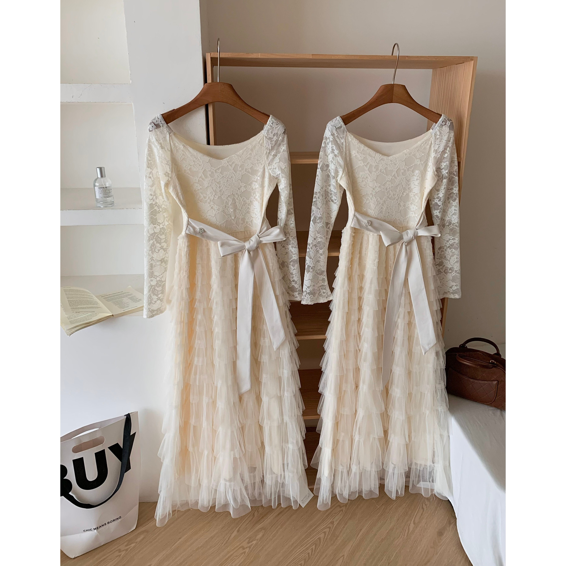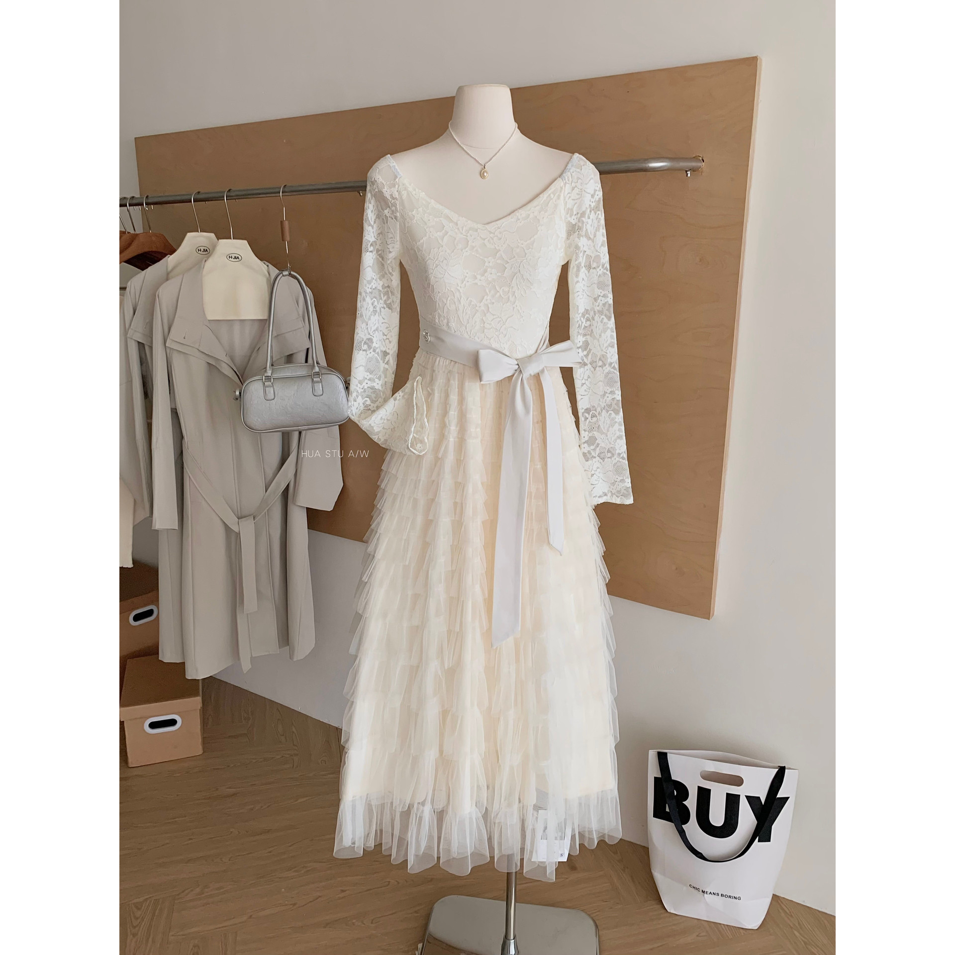 蕾丝蓬松蛋糕裙摆连衣裙加绒 复古法式 Catyears猫年 粉荔漫舞
