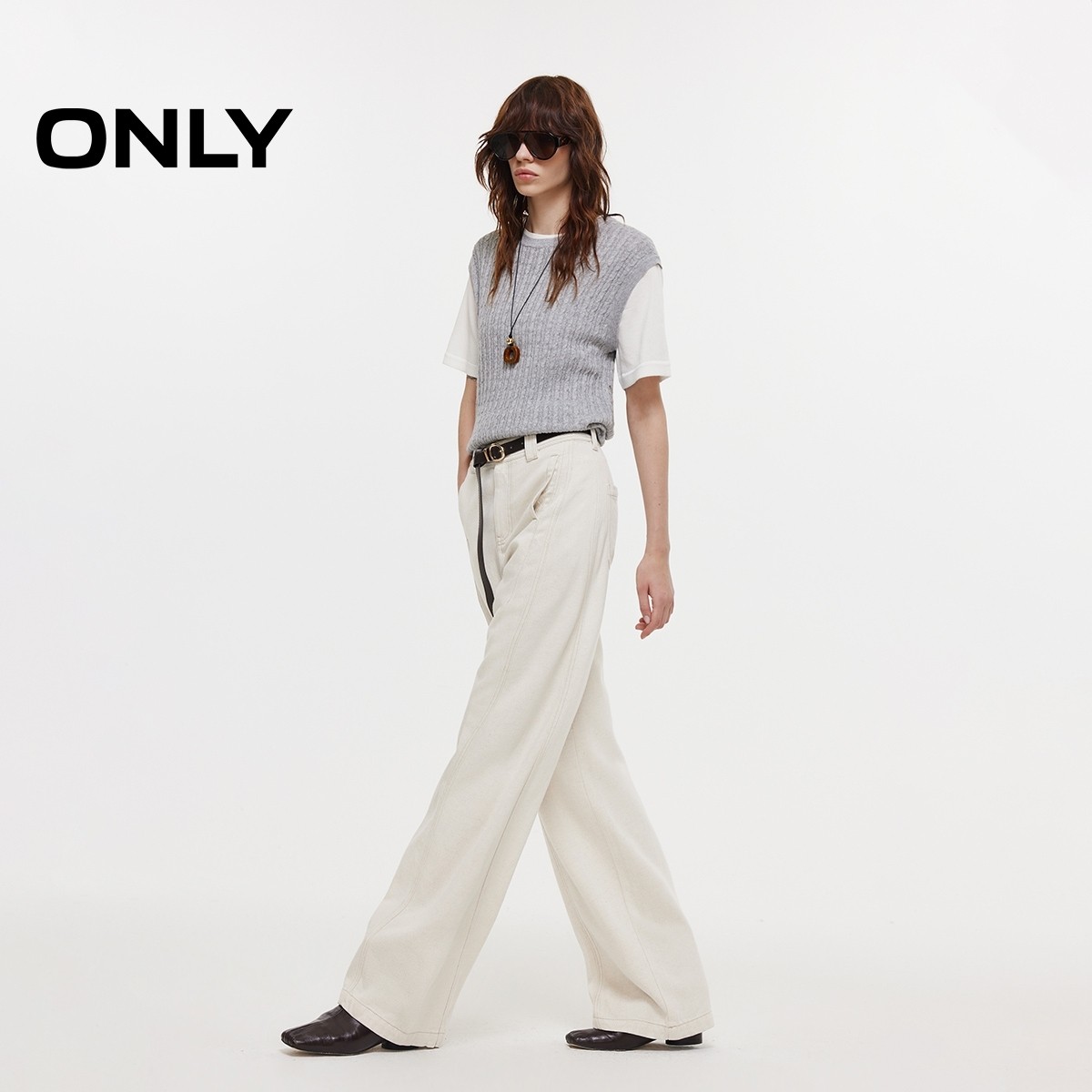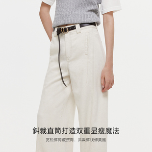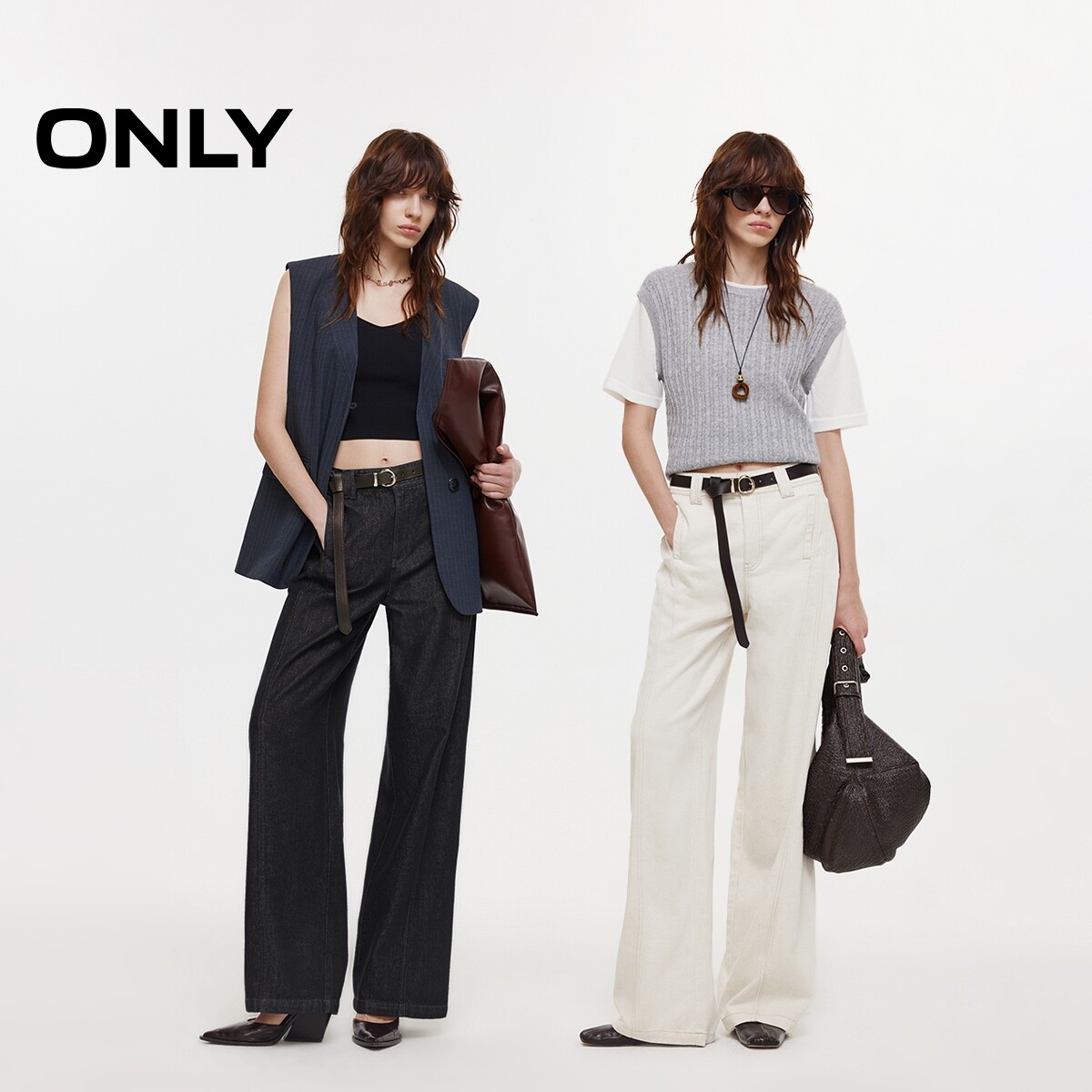 牛仔裤 ONLY2026春季 长裤 松弛感利落宽松显瘦斜裁侧线直筒裤 女 新款