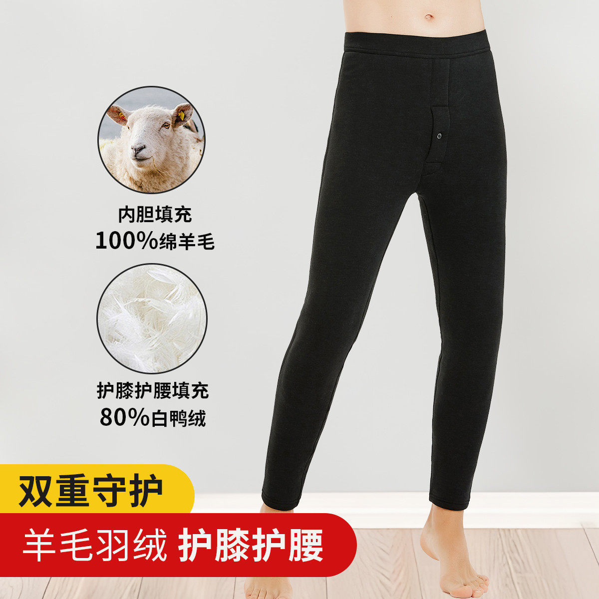 保暖裤 秋冬加厚速暖防寒男士 男棉裤 100羊毛填充羽绒护腰片