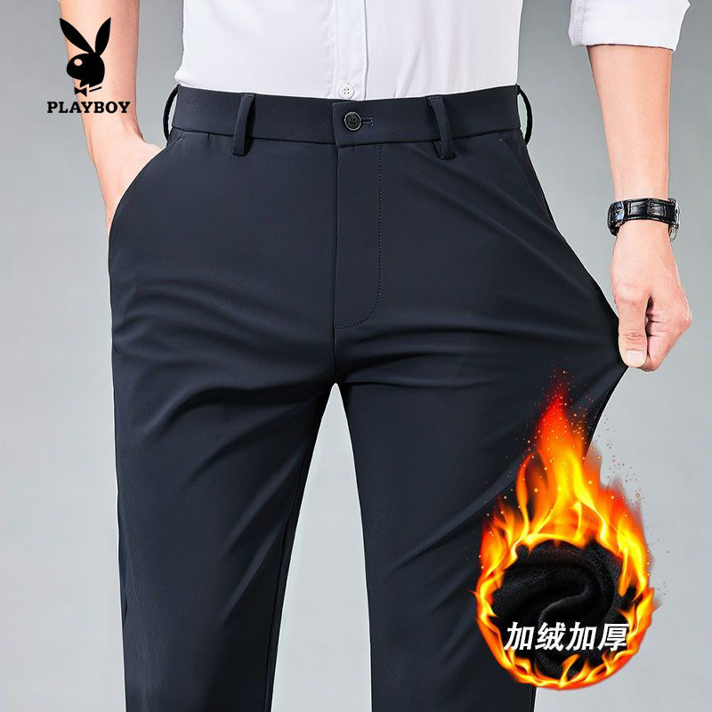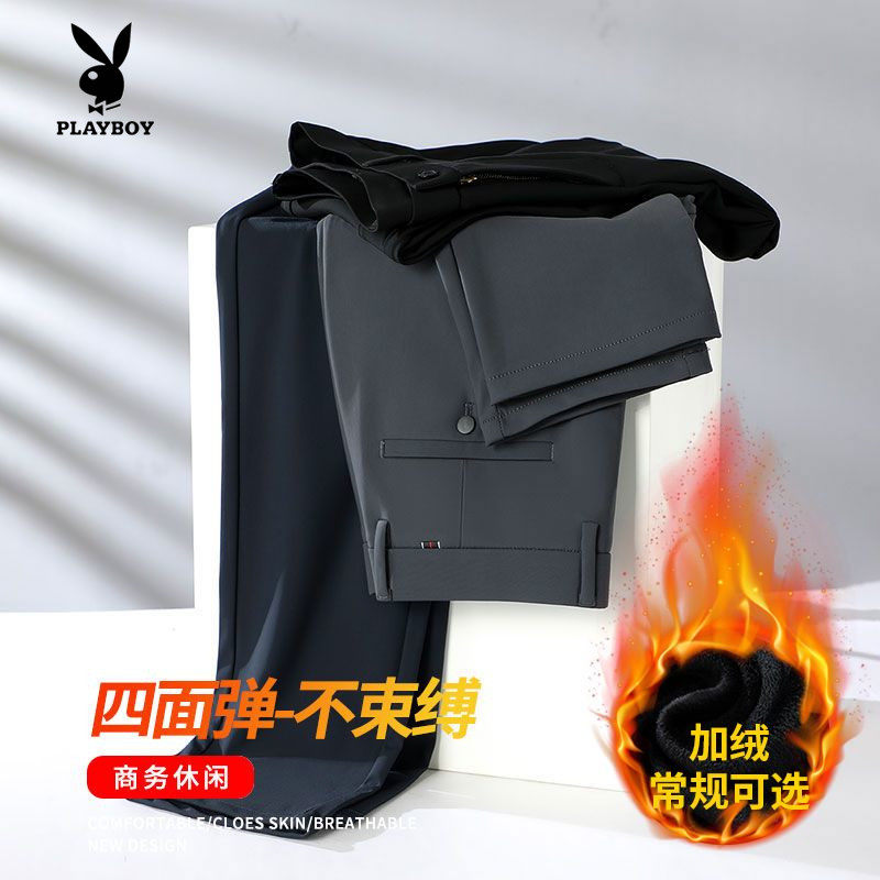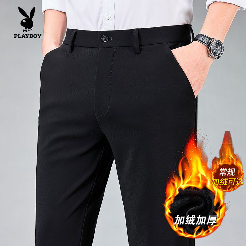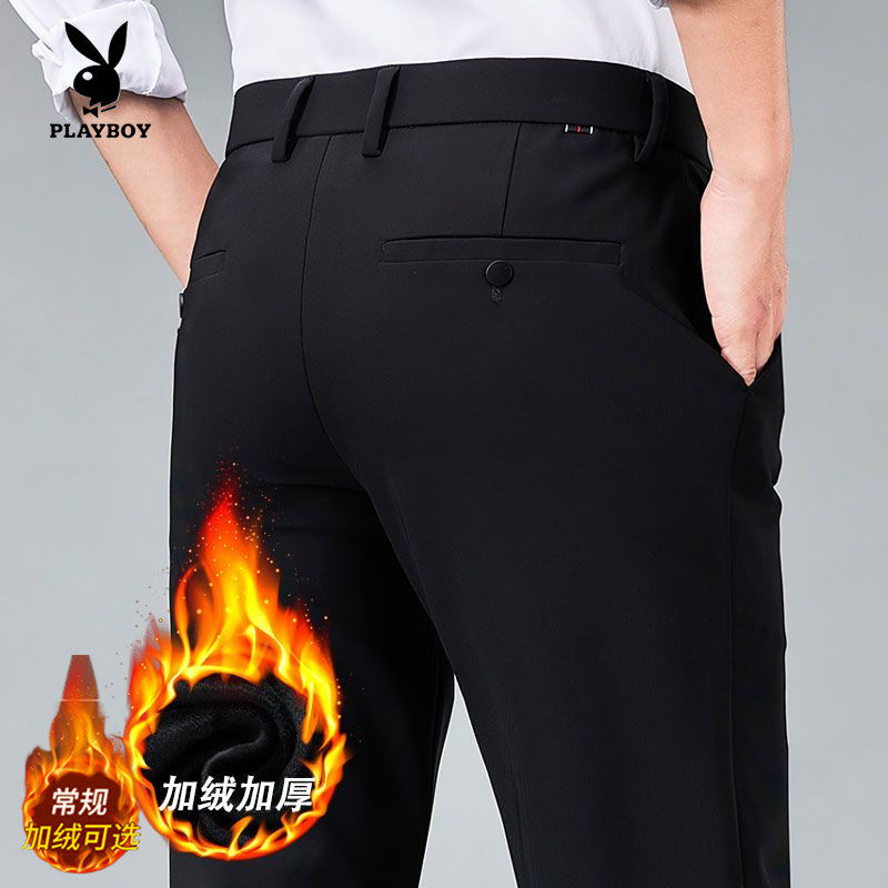 男秋冬弹力黑色直筒男裤 PLAYBOY 裤 加绒加厚西装 子 花花公子