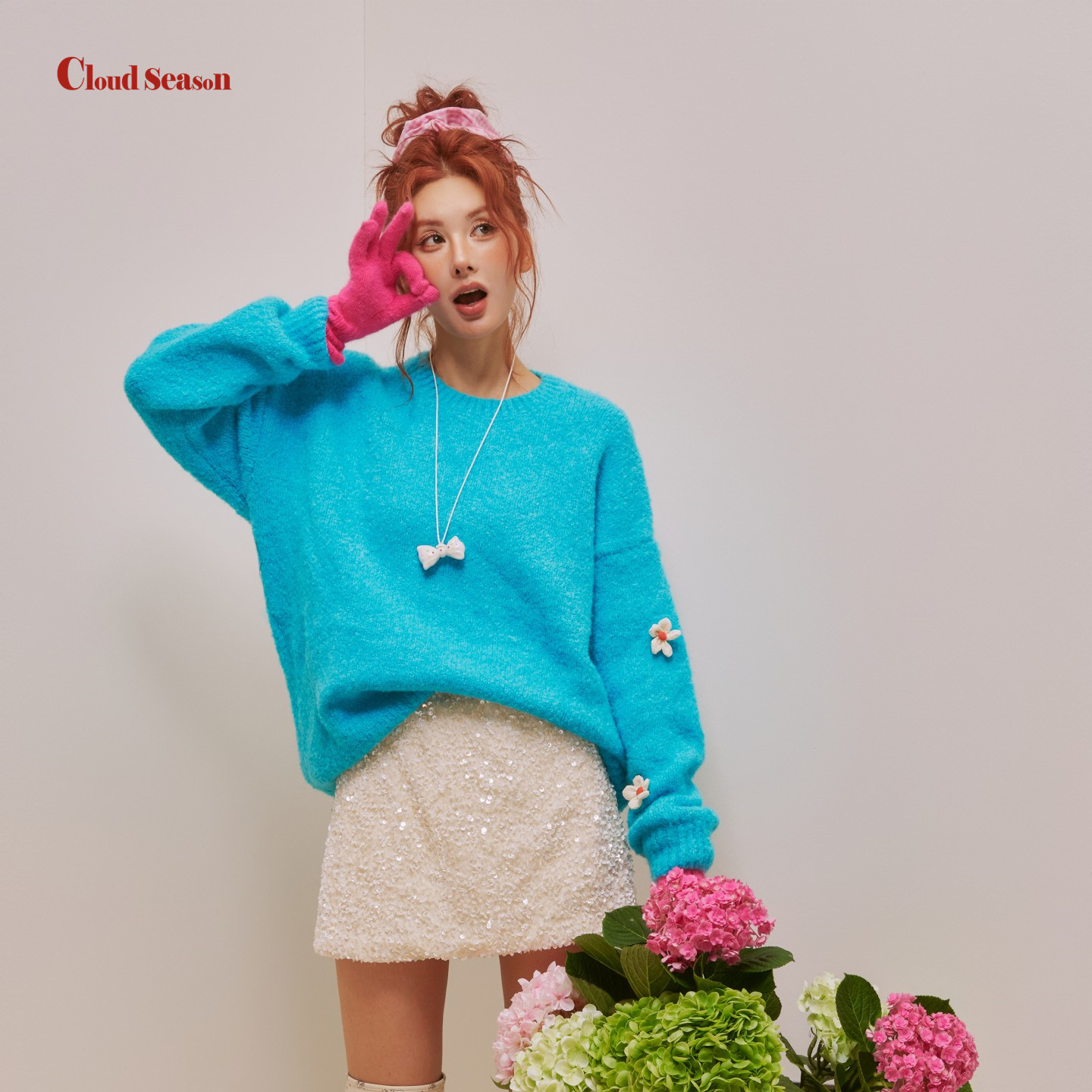 女秋冬修身 高级手工定珠圆领100羊毛针织开衫 打底毛衣 Lin Maven