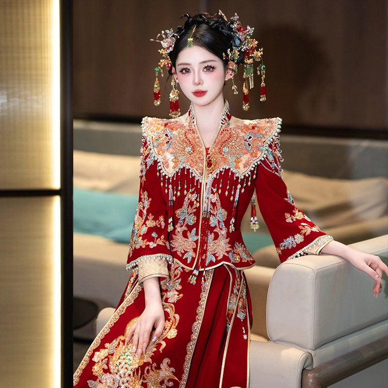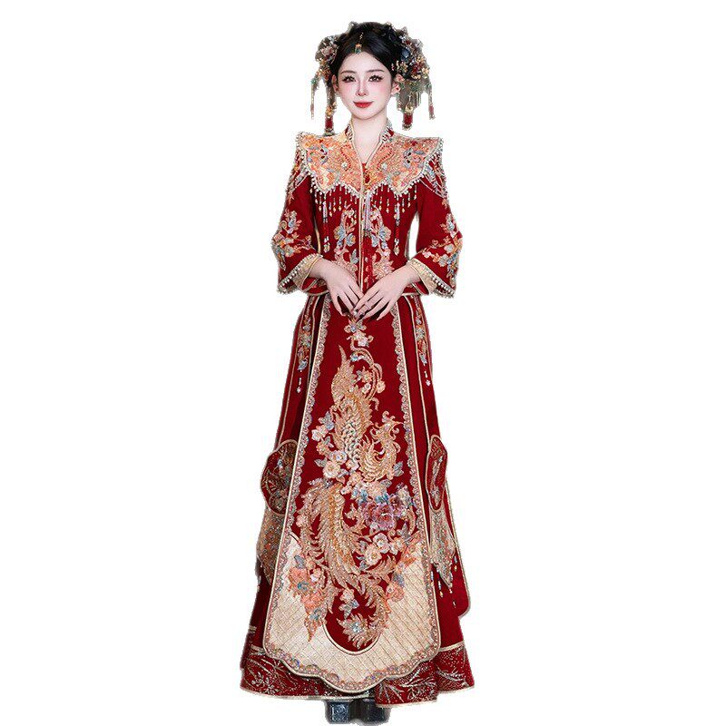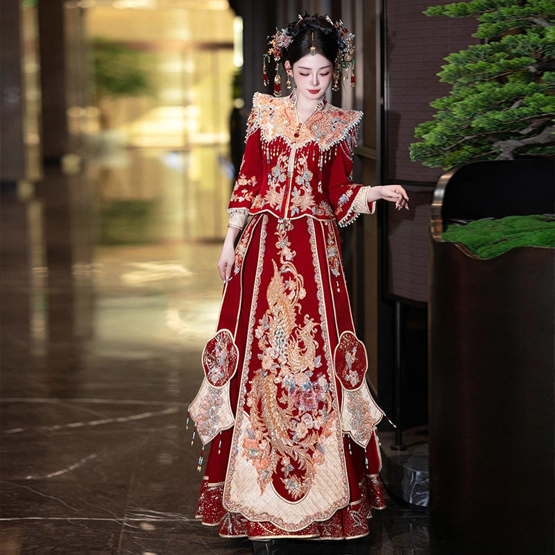丝绒新娘秀禾服婚服2025新款 出阁服嫁衣 重工轻奢结婚凤冠霞帔中式