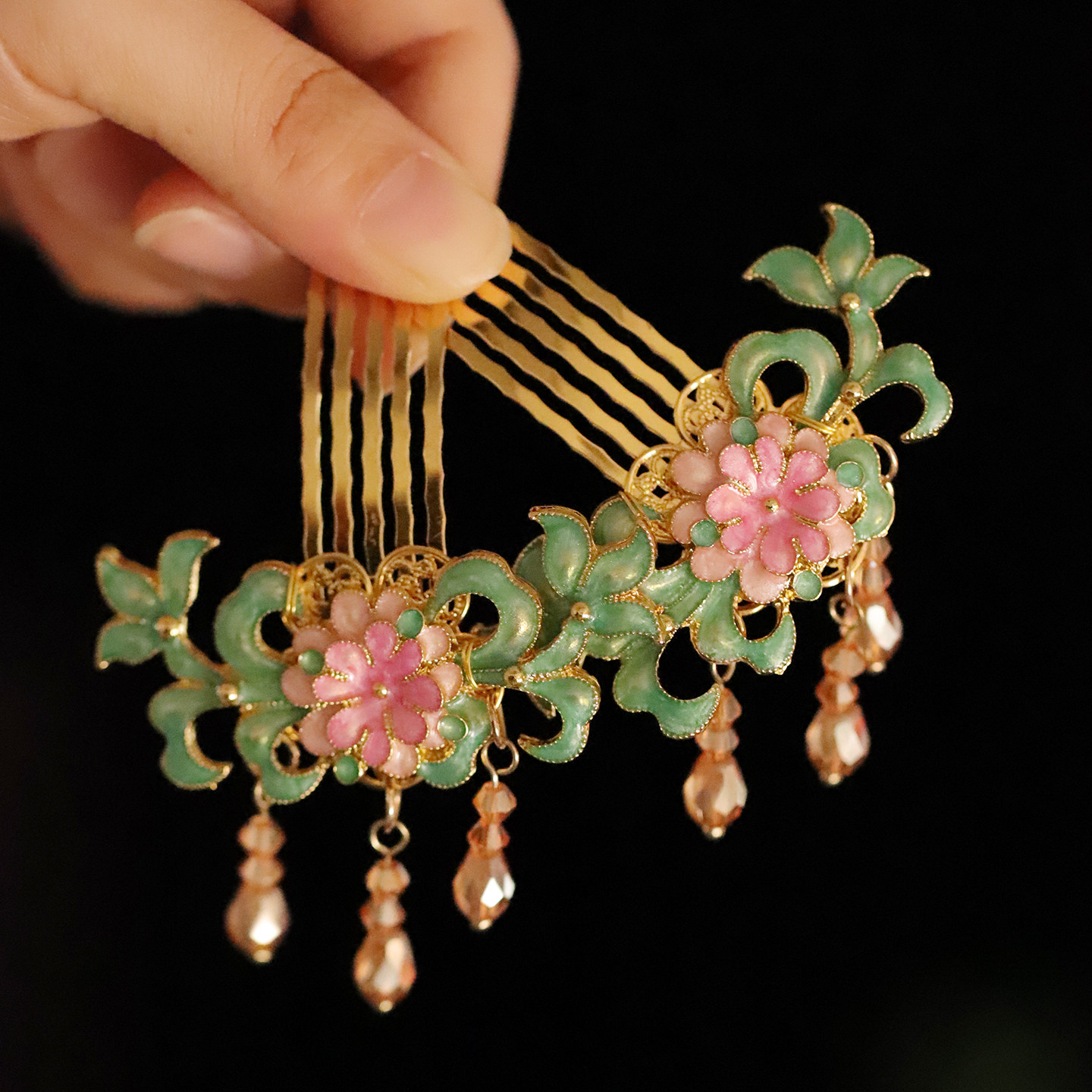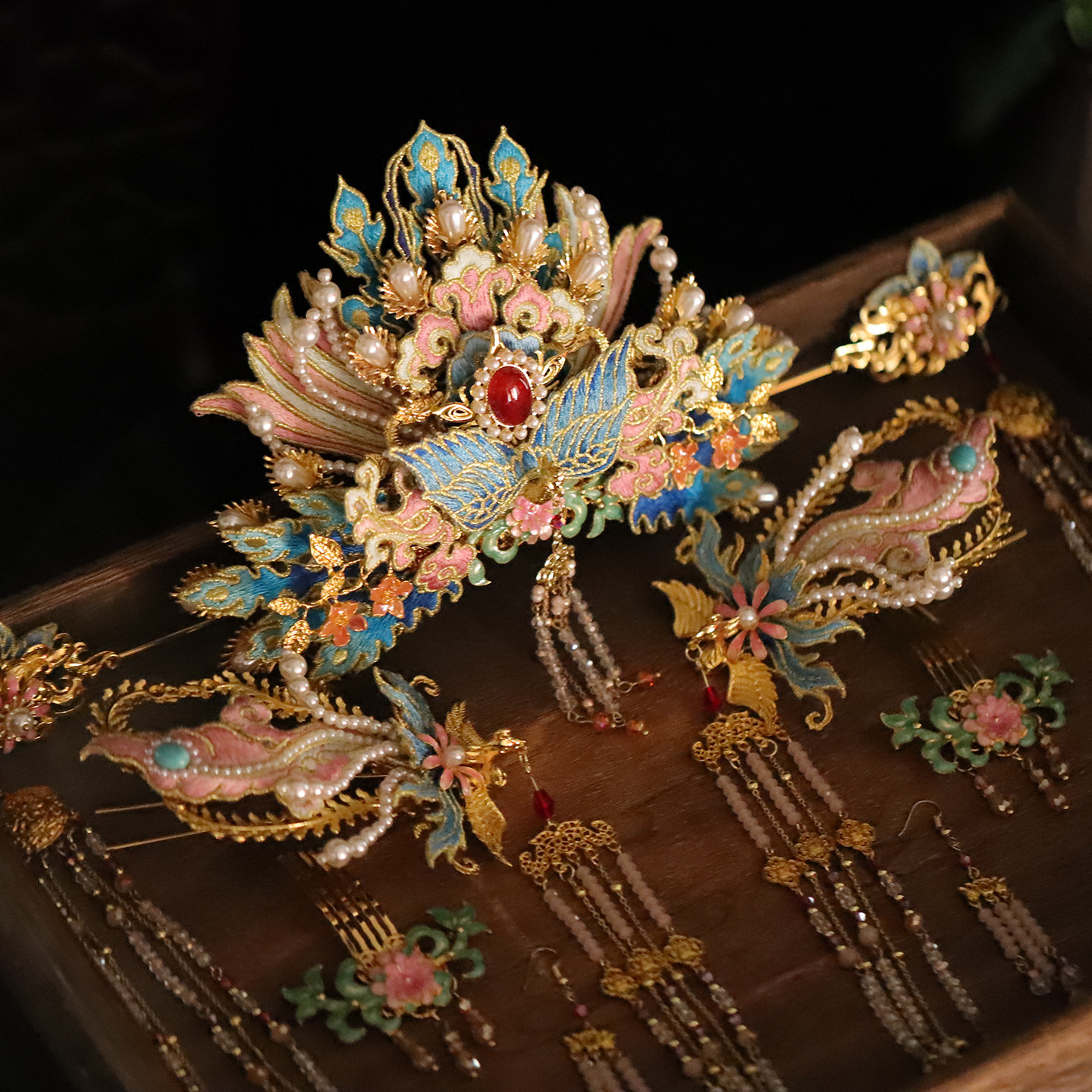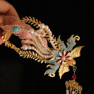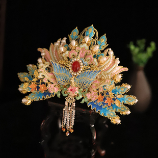 汉服凤冠头饰明制秀禾新娘头冠结婚饰品苏绣凤钗发簪 古装 新款 中式
