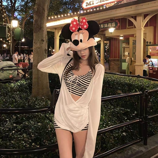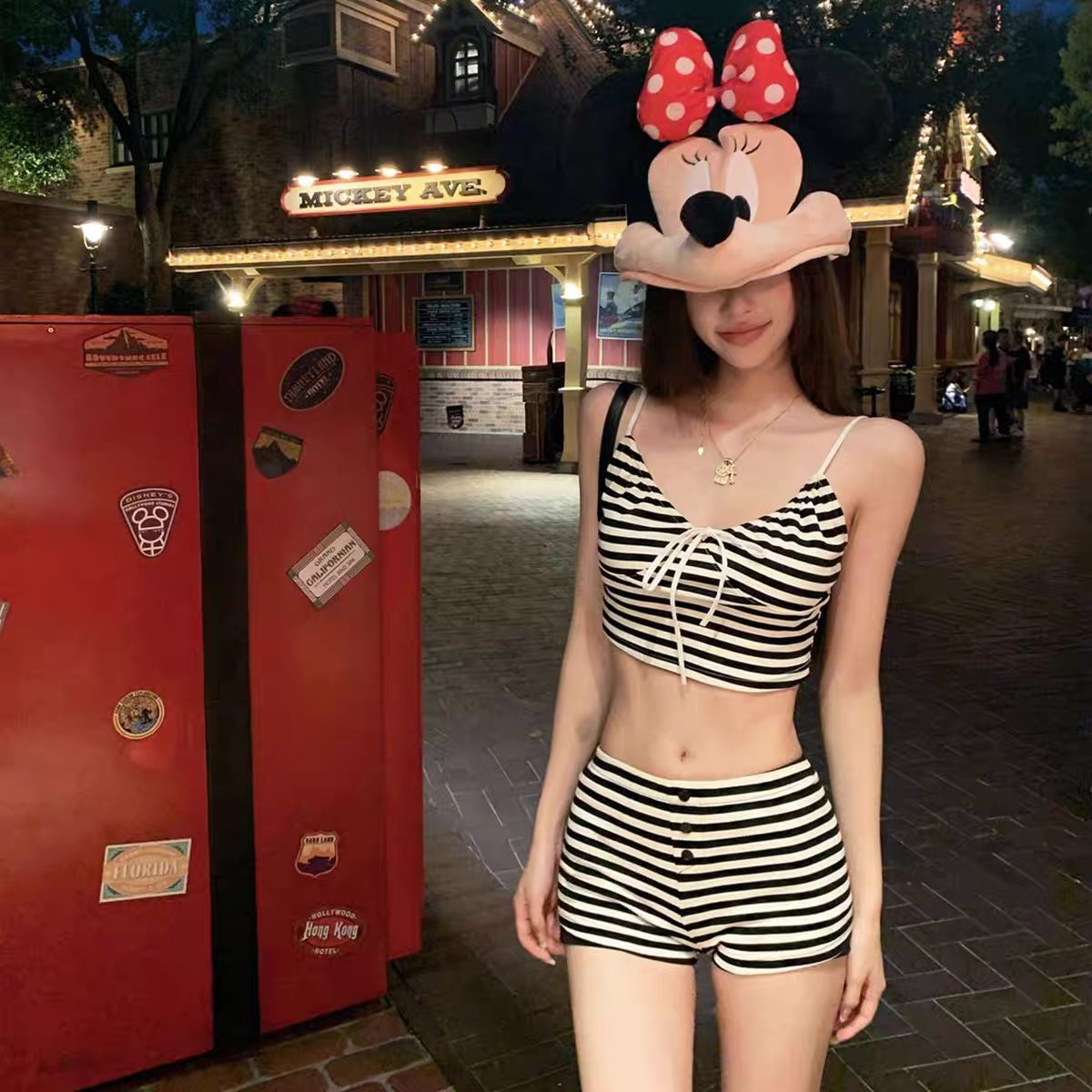泳衣女款 绝美分体平角条纹比基尼三件套性感吊带甜美小胸温泉度假