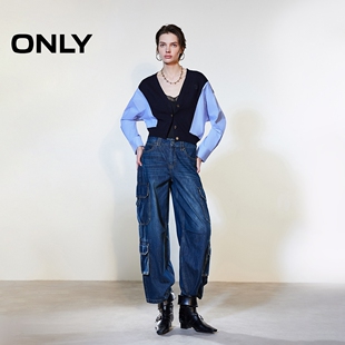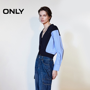 针织开衫 V领撞色拼接设计通勤软糯短款 上衣女 新款 ONLY2026春季