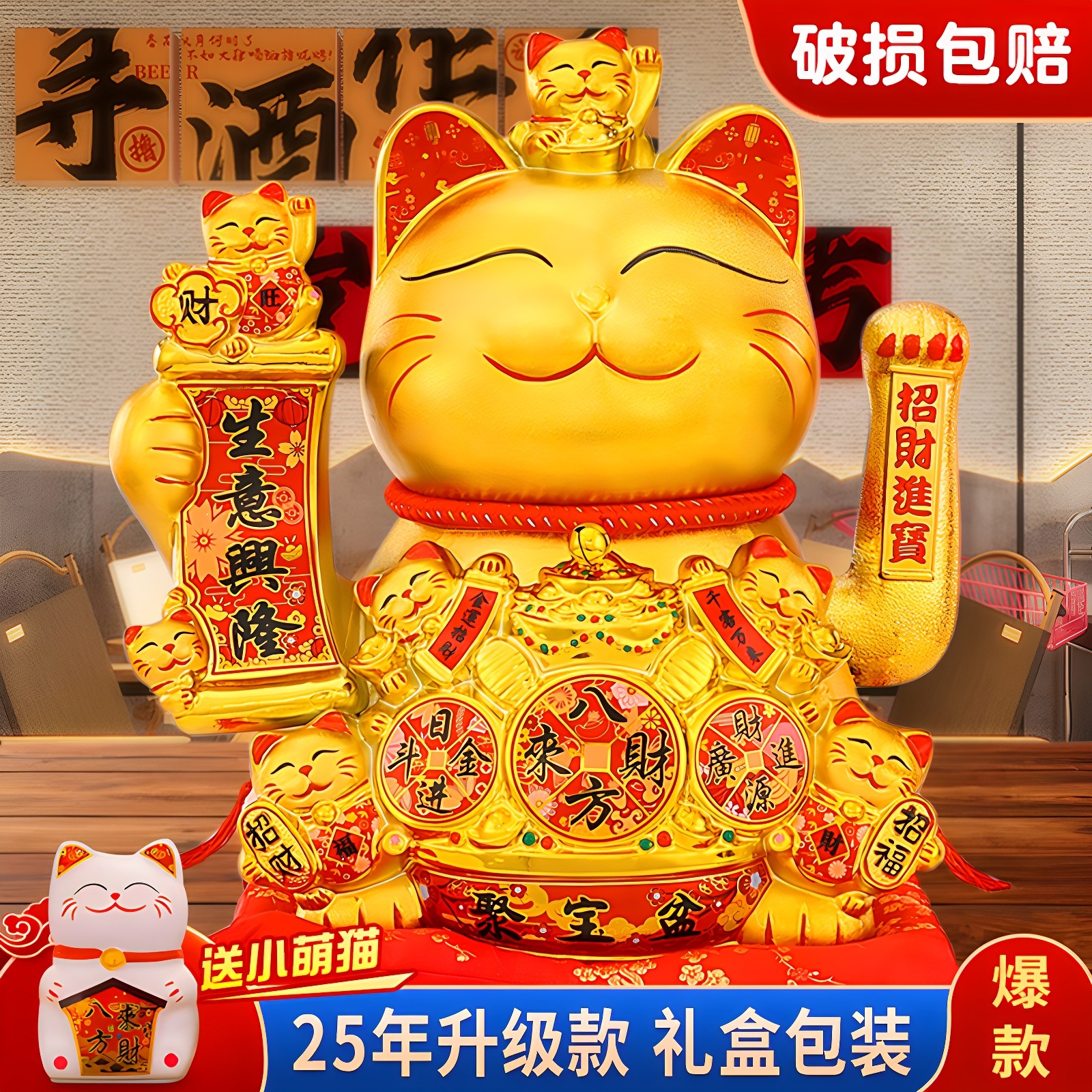 招财猫摆件自动摇手2025新款 饰 招手发财猫开业礼品店铺前台家居装