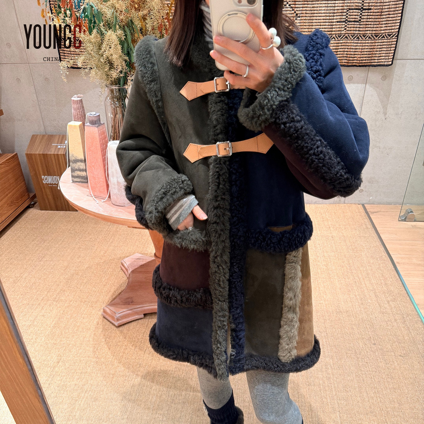 no退可换 设计师品牌 YOUNGC买手店 皮毛一体拼色圆领夹克 IMMI