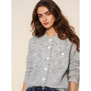 小香风圆领针织开衫 百家好法式 女秋冬独特别致短外套 House Basic
