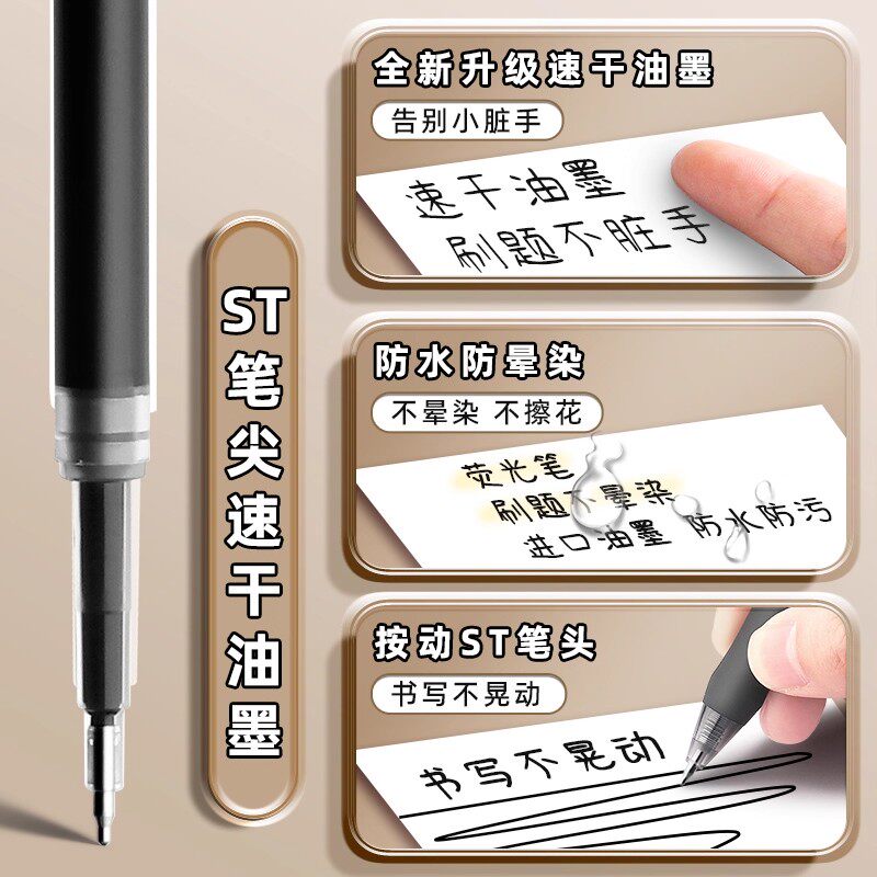 得力按动笔芯st头速干刷题笔芯0.5扩容s888顺滑中学生考试写见作业黑色水笔红色替芯加强型针管大容量ST笔芯