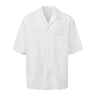 百搭半袖 张凌赫同款 外套夏季 白色刺绣古巴领衬衫 宽松衬衣男女 短袖