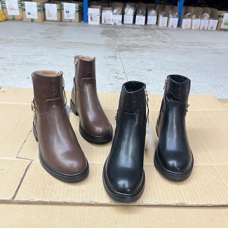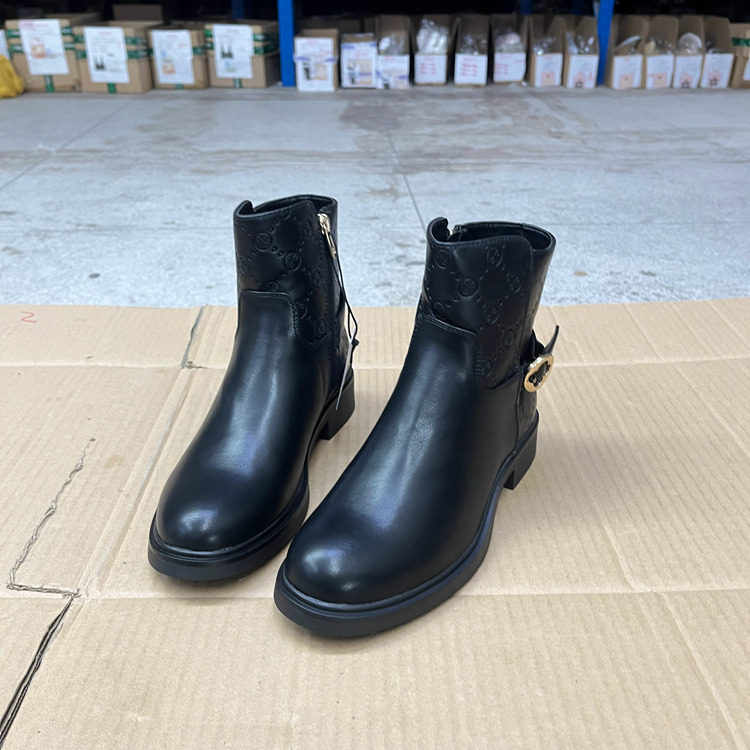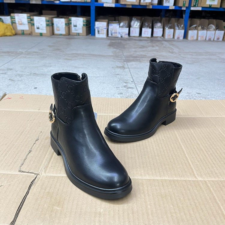 短靴 圆头纯色粗跟侧拉链皮带扣时装 Lady Shoes外贸原单女靴时尚