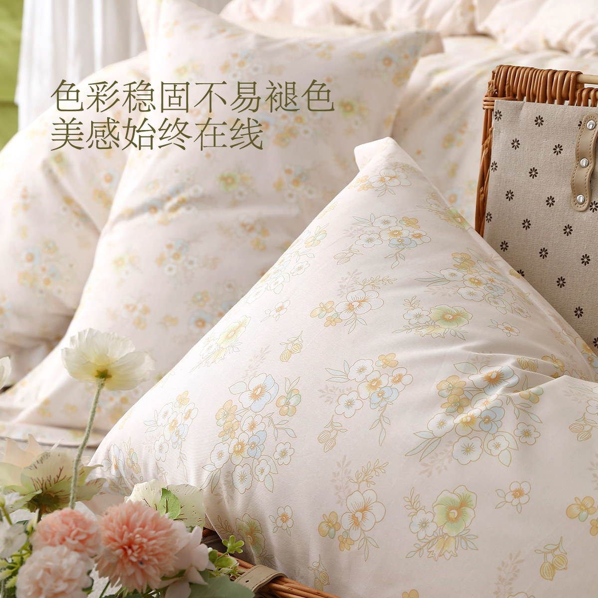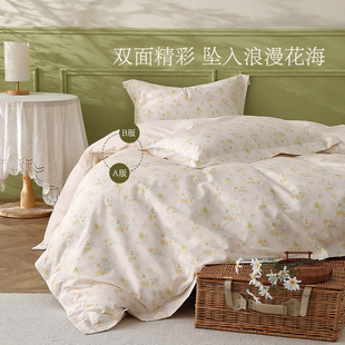 水星家纺全棉印花四件套100%纯棉套件田园风被套床单床品2025新品