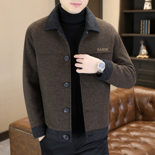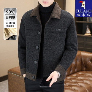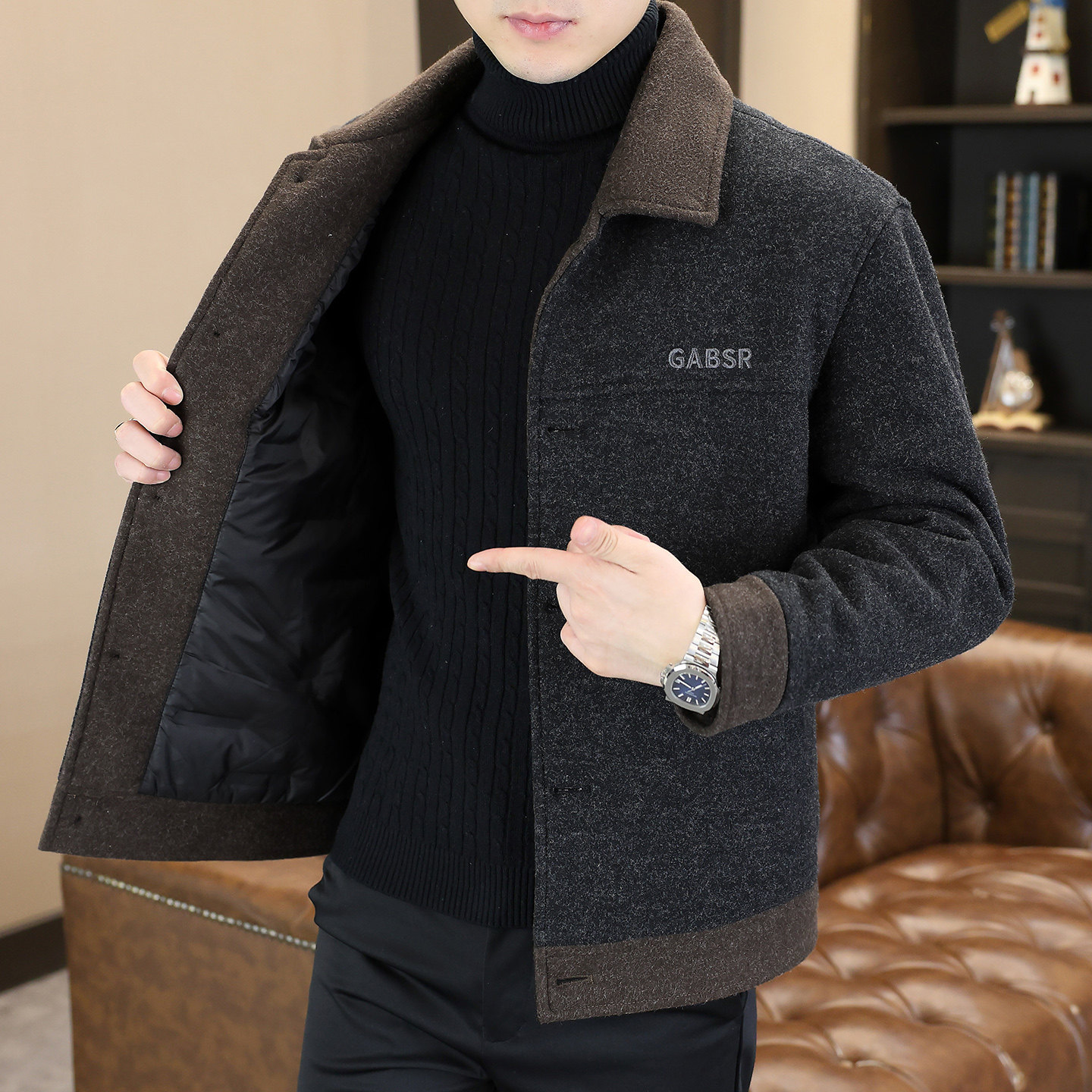 羽绒内胆翻领撞色毛呢大衣 毛呢夹克外套男2025新款 啄木鸟冬季 短款