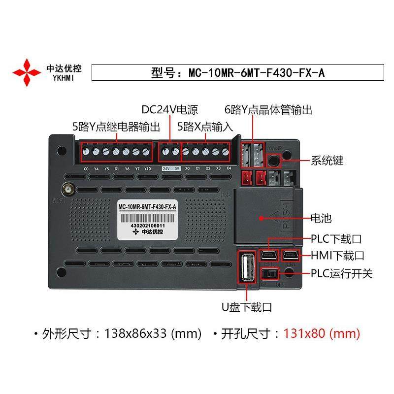 10MR 6MT B带模拟量ADDA4.3寸PLC一体机 F430 中达优控MC