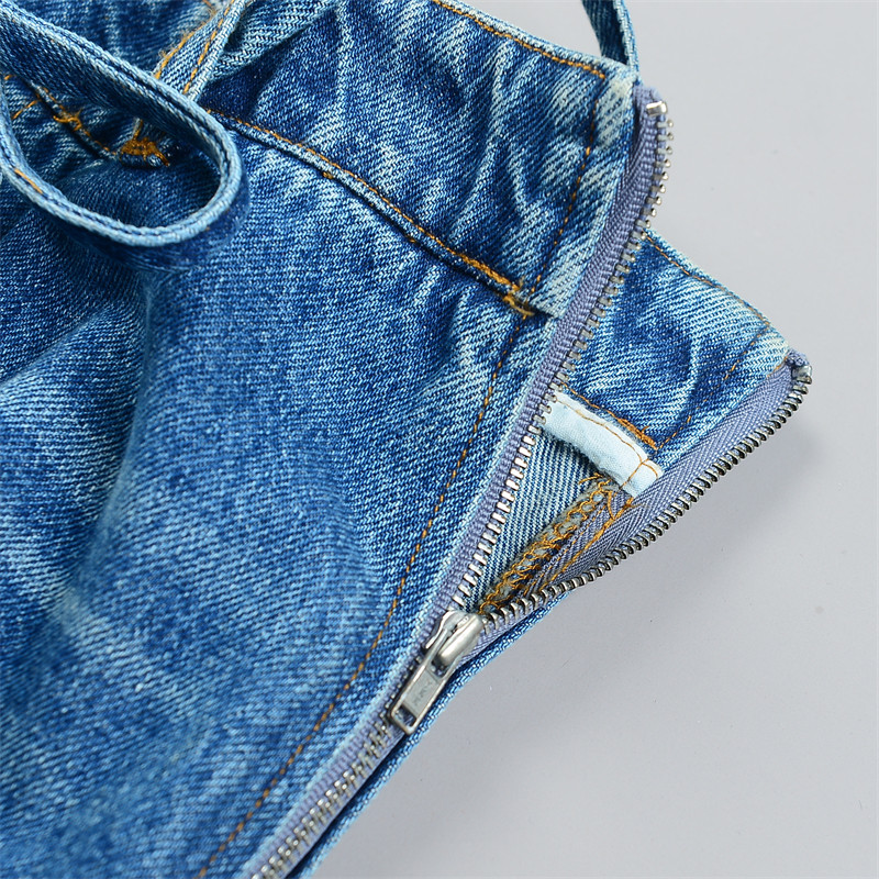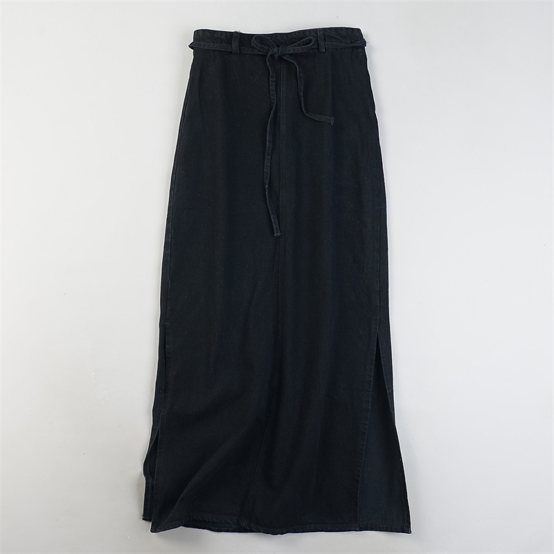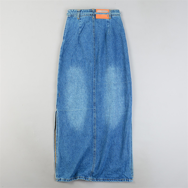 外贸纯棉牛仔半身裙女11.18L84731高腰修身 一步裙气质开叉长裙子