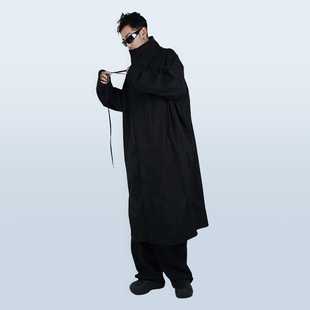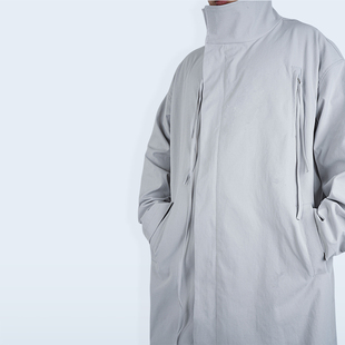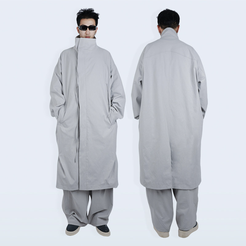战壕大衣廓形英伦外套男秋 灰色巴尔玛肯风衣中长款 马登工装 德式