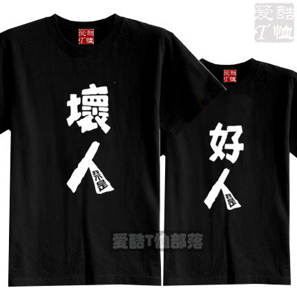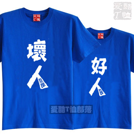 定制DIY纯棉圆领直身时尚 包邮 短袖 T恤1件 情侣坏人好人 大码 个性