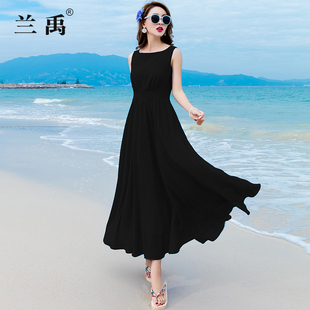 氛围感纯欲辣妹度假穿搭连衣裙紧身T恤飘逸大裙摆半身裙拖地长裙