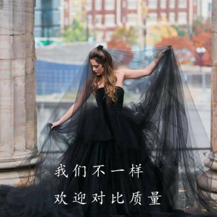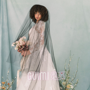 新娘头纱单层旅拍婚纱摄影头饰复古韩国孕妇拍照水晶纱黑色软纱