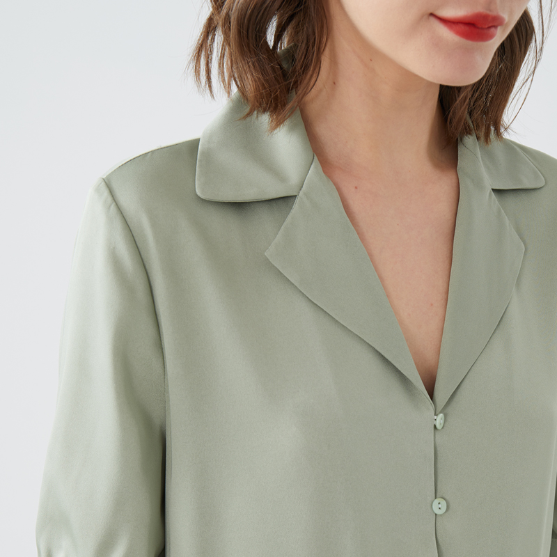 百搭气质上衣女 木耳领衬衫 仙草宝相提花缎真丝桑蚕丝白色法式 长袖