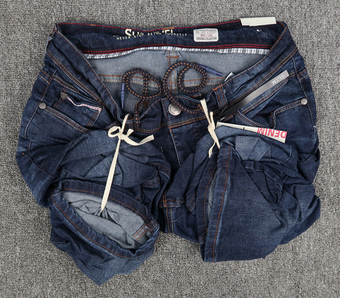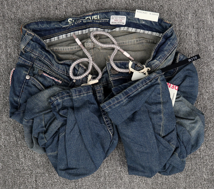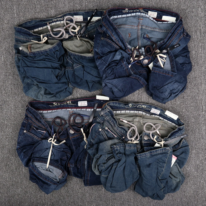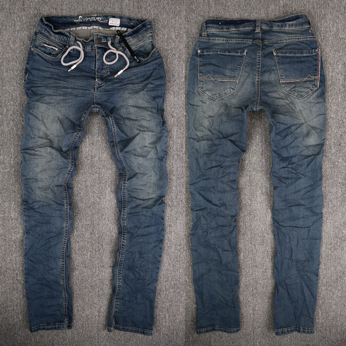 铅笔裤 细腿小直脚做旧褶皱柔软棉弹薄款 春秋 男中腰修身 外贸牛仔裤
