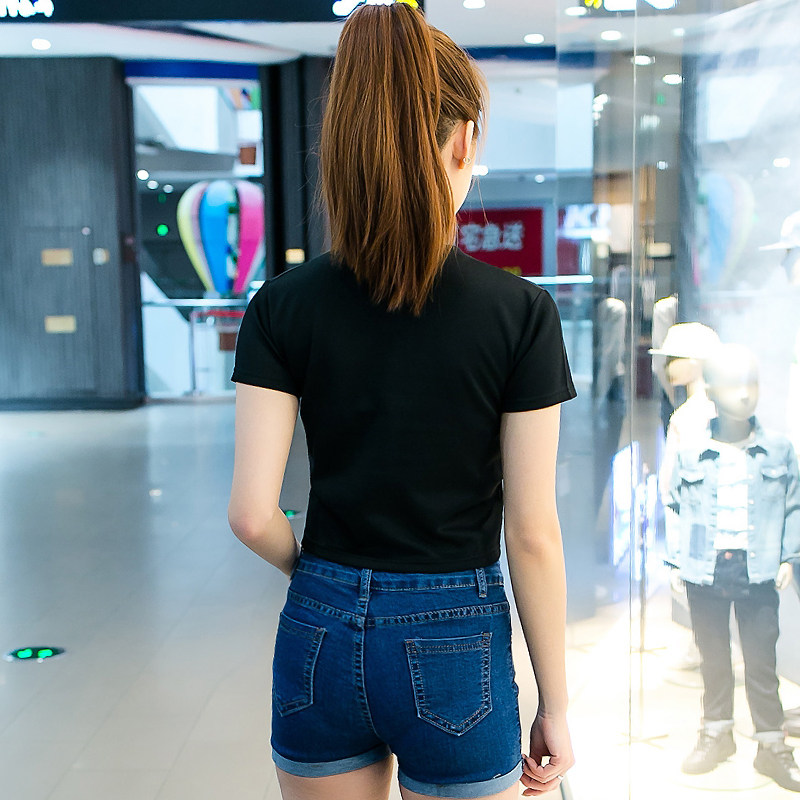 网红2020新款 黑色t恤女高腰露脐短款 打底衫 上衣漏肚脐修身 潮 短袖