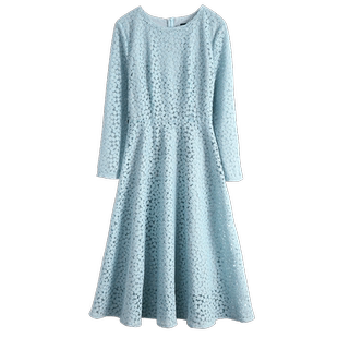 宝诗黎网纱印花拼接亮丝连衣裙2026新款 百搭中长裙 遮肉A字裙春季