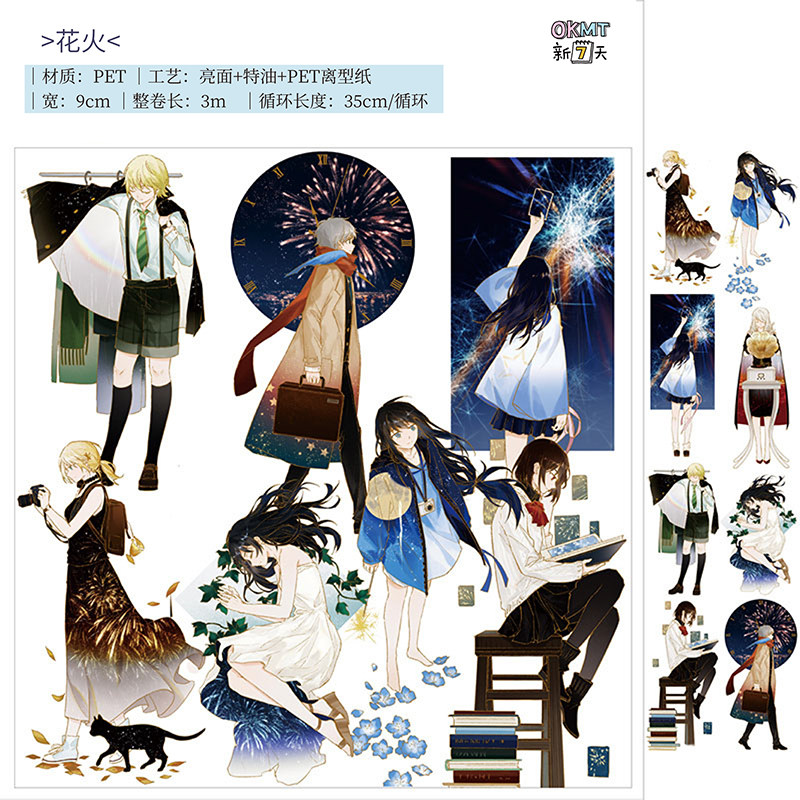 新七天手帐手账胶卷少女文具和纸胶带贴纸用品PET亮面花火 时令歌