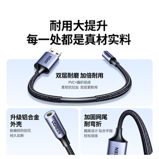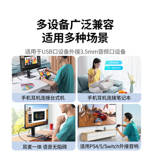 绿联usb转35mm音频线耳机孔麦克风音响耳麦二合一笔记本台式 机电脑接口转接头typec转换器3.5毫米aux外置声卡