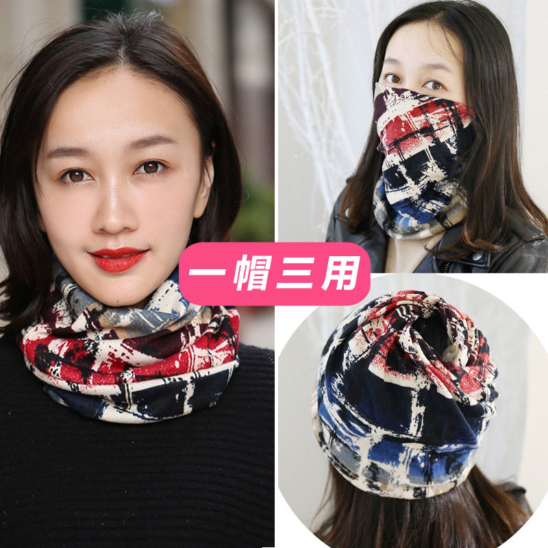 秋冬保暖帽子女款 毛线针织头巾头套包头帽护耳遮白发发带 2025新款