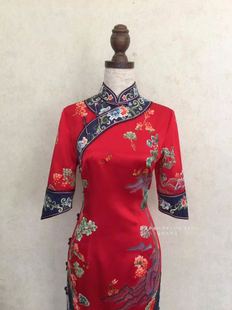 连衣裙敬酒服礼服裙 少女修身 鹿与玫瑰新中式 红色旗袍女改良年轻款
