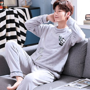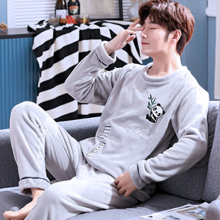 三层夹棉睡衣珊瑚绒加绒加厚法兰绒家居服冬天套装 秋冬季 男士 新款
