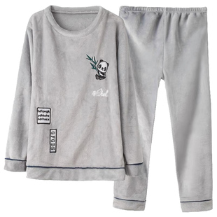 青少年家居服套装 珊瑚绒三层夹棉加厚加绒睡袍长款 睡衣秋冬季 男士