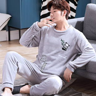 睡衣珊瑚绒夹棉袄三层加厚加绒保暖法兰绒家居服套装 芬腾冬季 男士